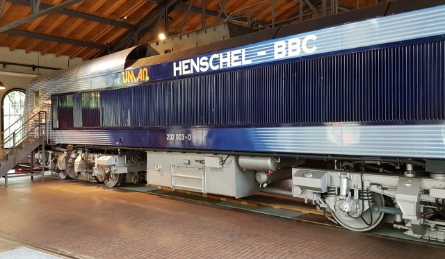Wikipedia tells me that this is an experimental DB Class 202, representing a major milestone in the German locomotive development, since in these locomotives three phase asynchronous electric traction was first applied in a mainline diesel-electric locomotive.