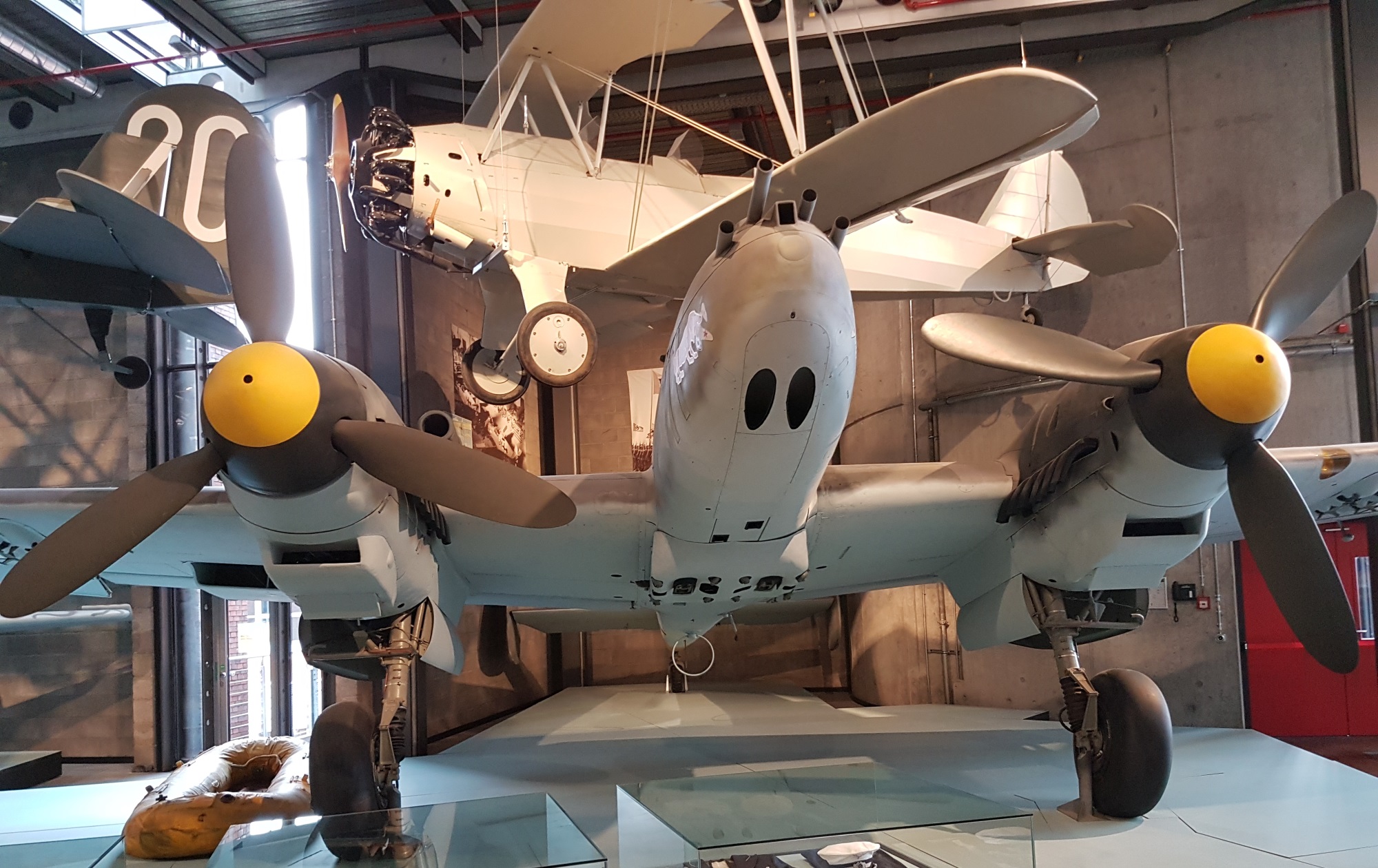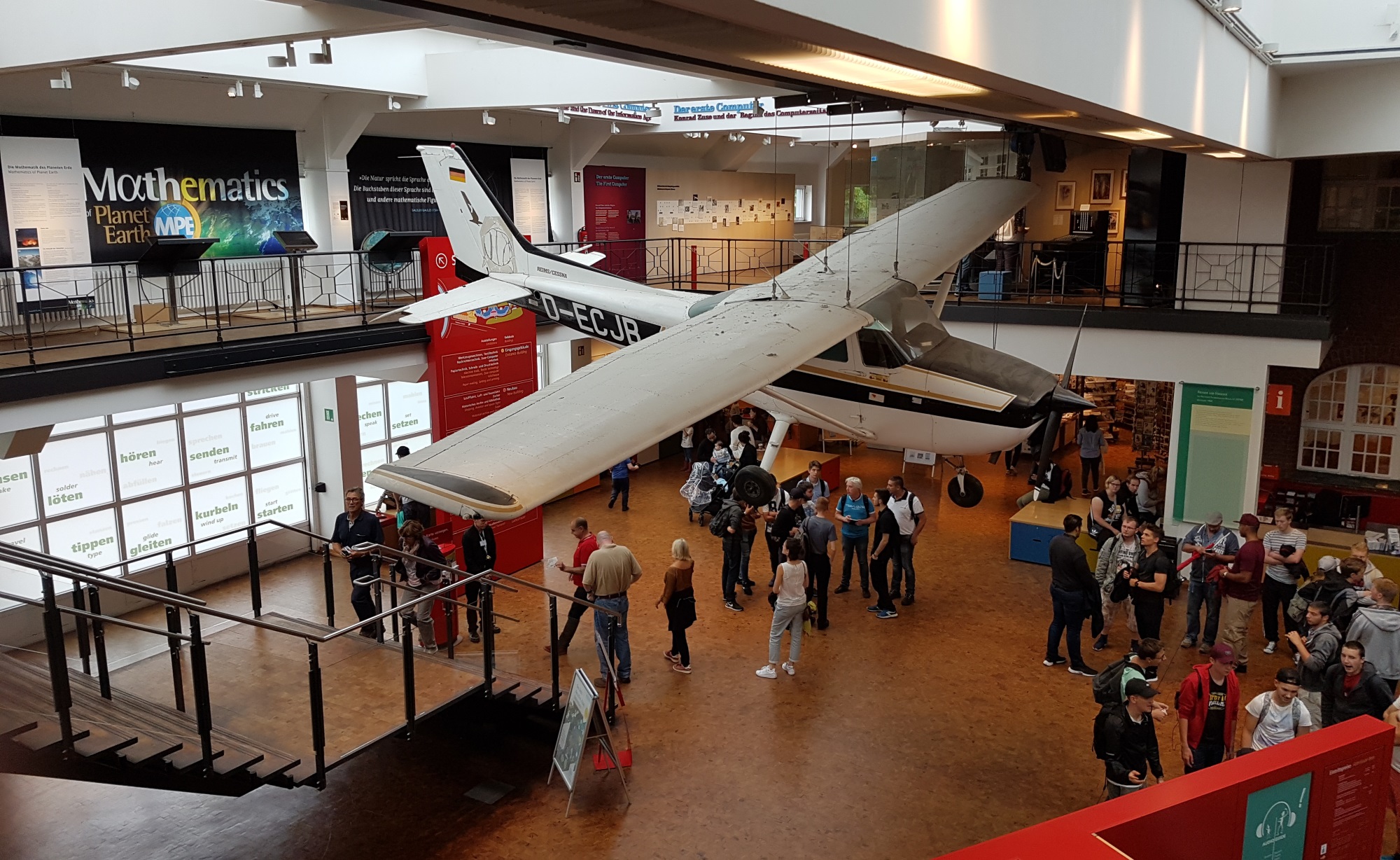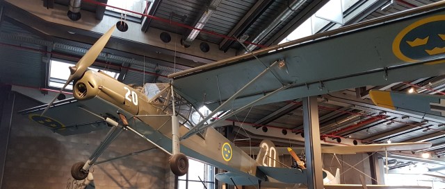Entering the museum, you see this Cessna suspended from the foyer ceiling….