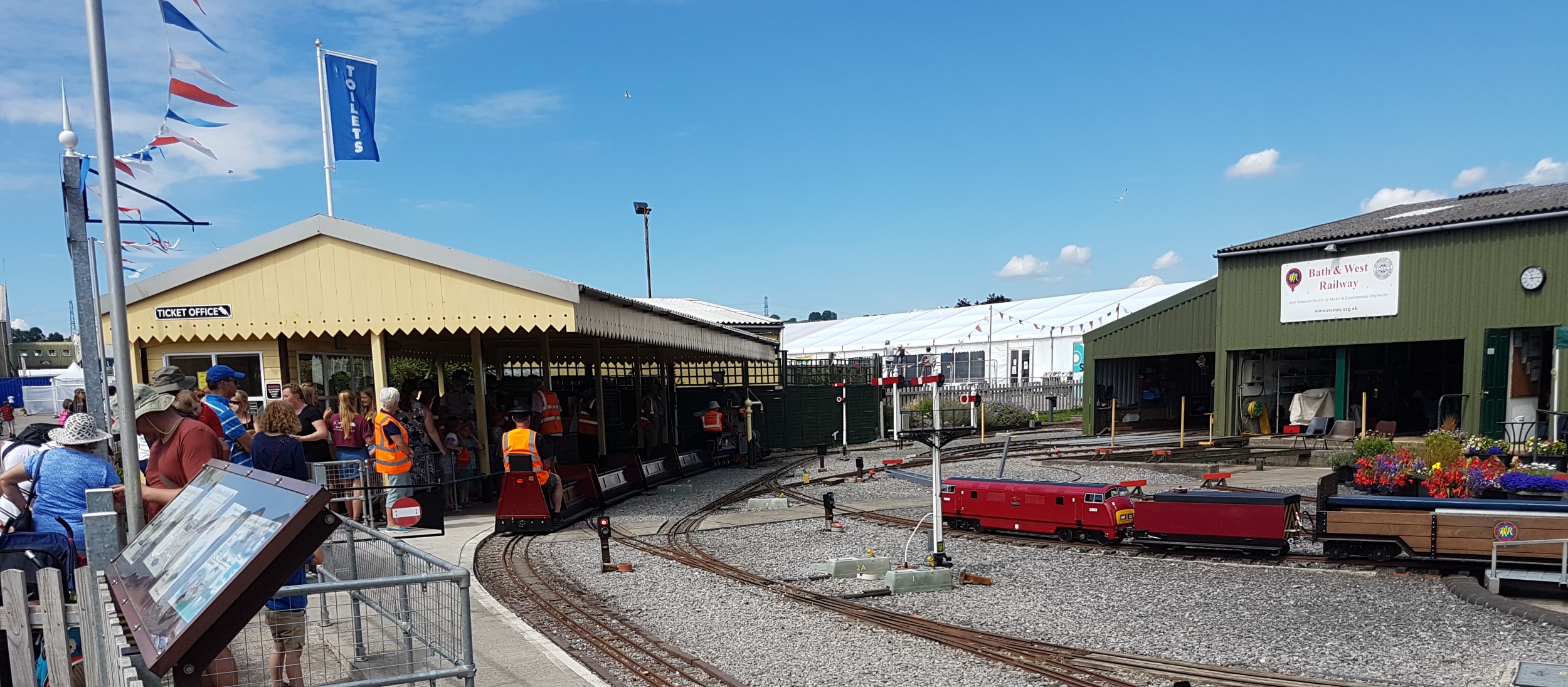 It was sunny on the day off, so I took the usual pictures of the miniature railway that is on the Showground, run by the East Somerset Society of Model & Experimental Engineers. Most of the main line is dual gauge 5″ and 7¼” gauges (just a little larger than ‘N’ gauge). Each year at New Wine, ESSMEE open up the railway for the day and offer rides for all and sundry. Read more about this little railway at http://www.essmee.org.uk/