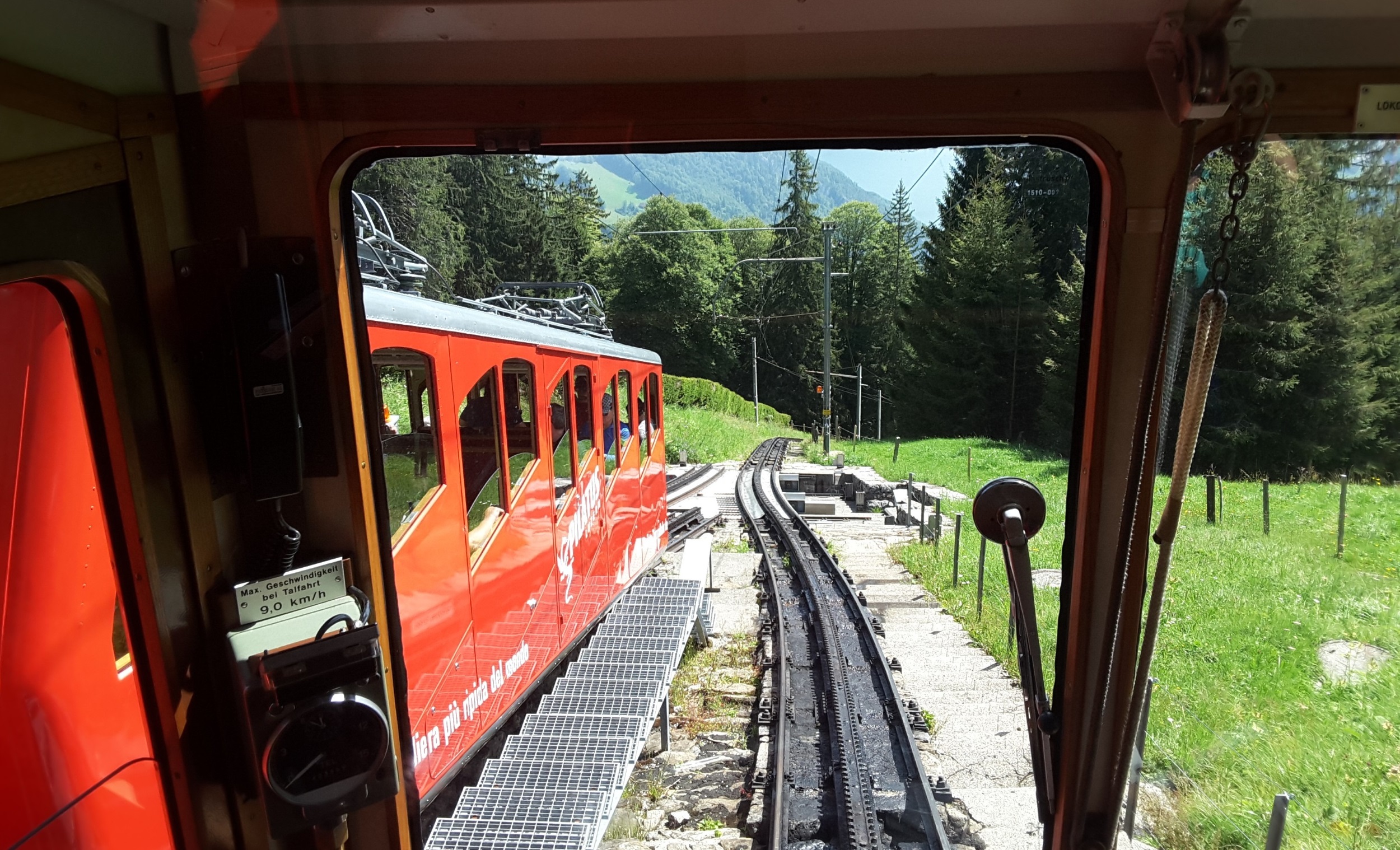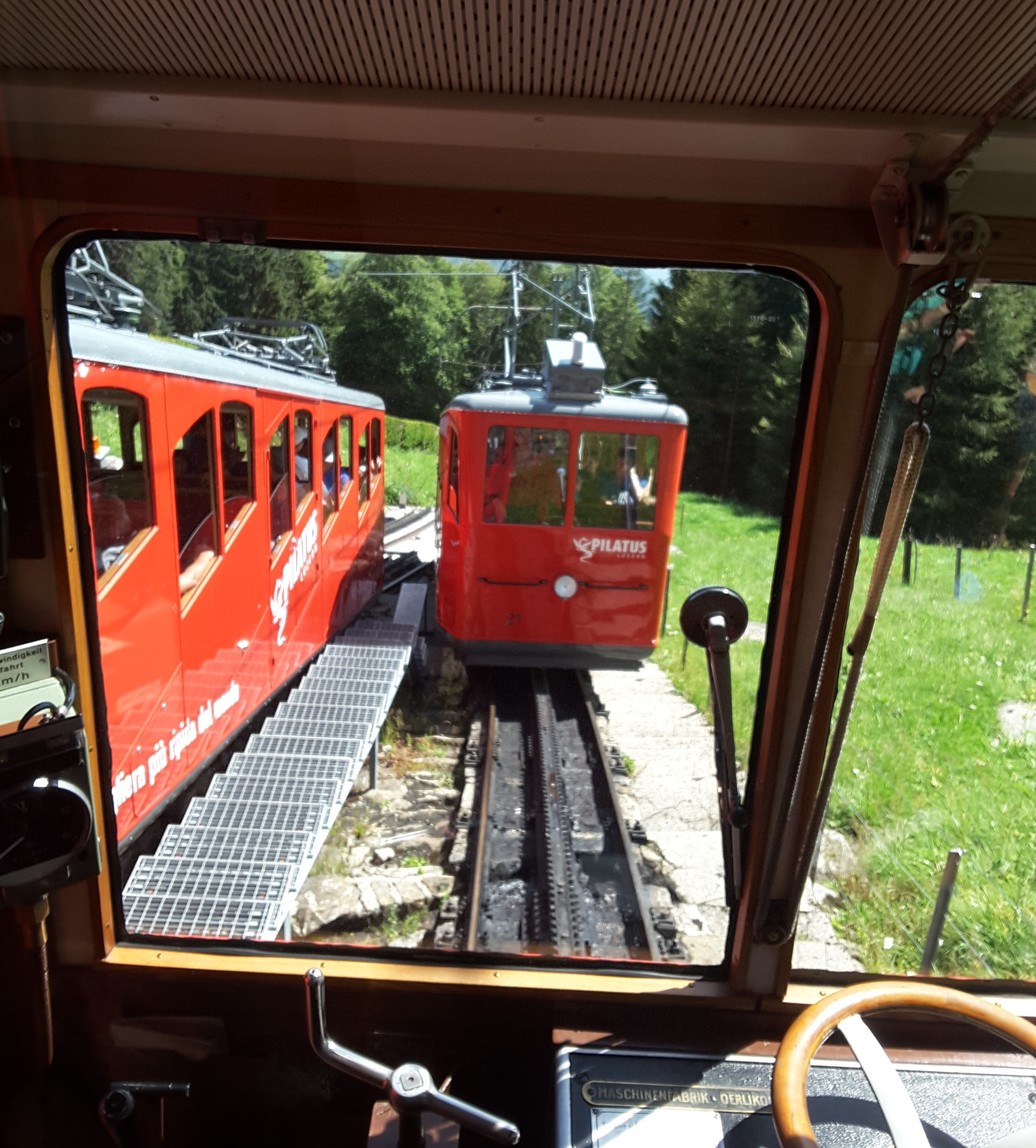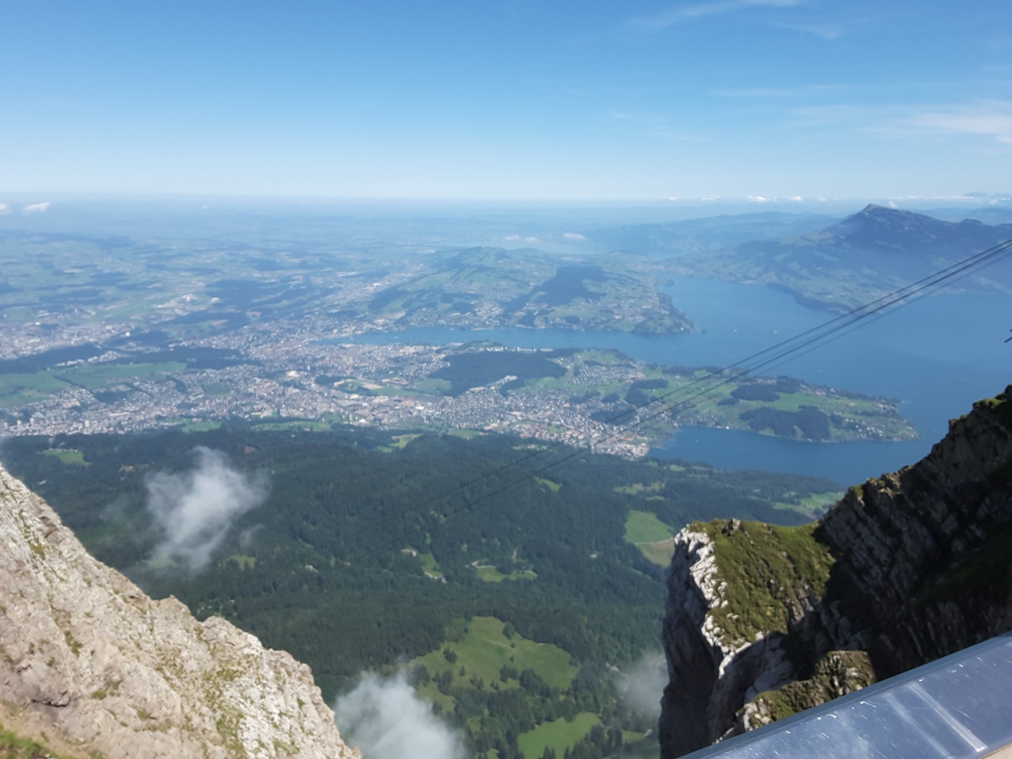 As it was hot we went up Pilatus as it is now included on Swiss Travel Pass. Sat in open air restaurant at the top for a meal in a cooling breeze. Allan went up by train and down by cable car. Ron went both rays by train as he has a phobia about cable cars