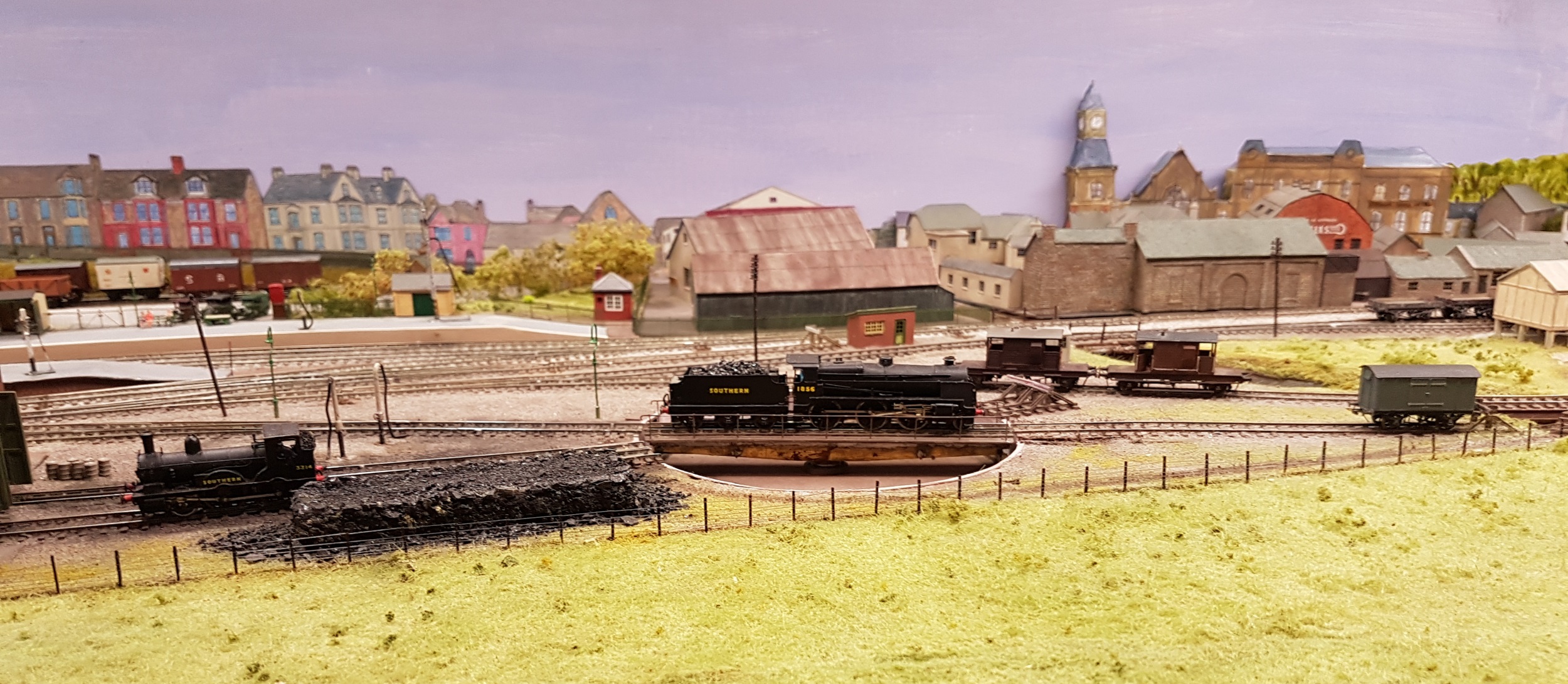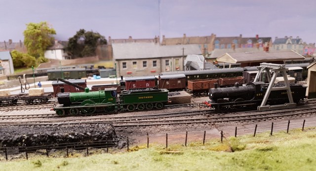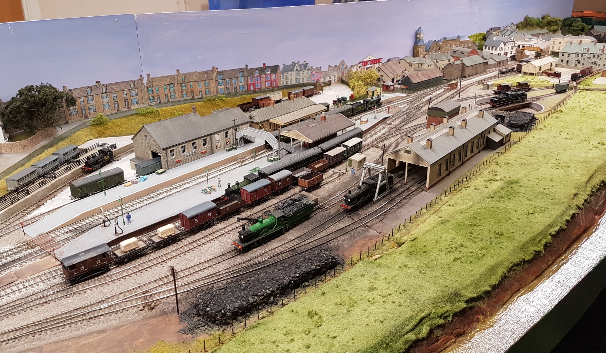 ‘Wadebridge’ is a slightly compressed model of the Southern Railway station in North Cornwall at the far west of the Southern empire. It’s part of a larger home layout of the North Cornwall line, and is full of beautiful models. There’s a thread describing it on RMweb somewhere. And yes, that 2-4-0T Beattie Well Tank does work…..