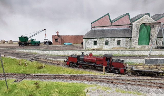 Moving on from Farnham was ‘Denton Brook’ in ‘O’, but I couldn’t resist a photo of this 0-4-0 0-4-0 industrial garratt, and the working radio controlled crane in the background.