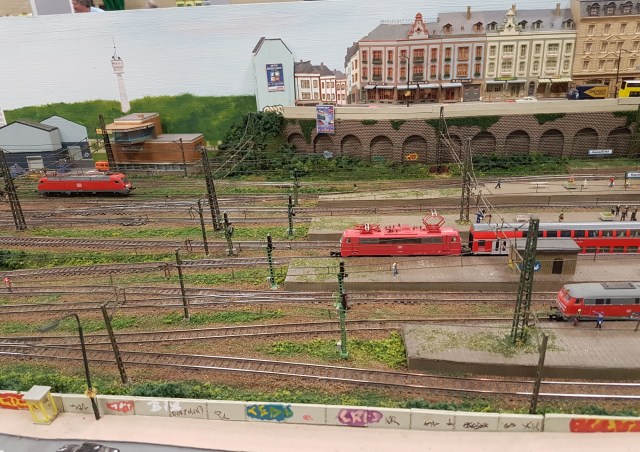 Pick of the other ‘N’ gauge layouts was probably Kayreuth, set somewhere in Germany, on the Ruhr. Lots of interesting detail, and there’s always a train moving in a cityscape.