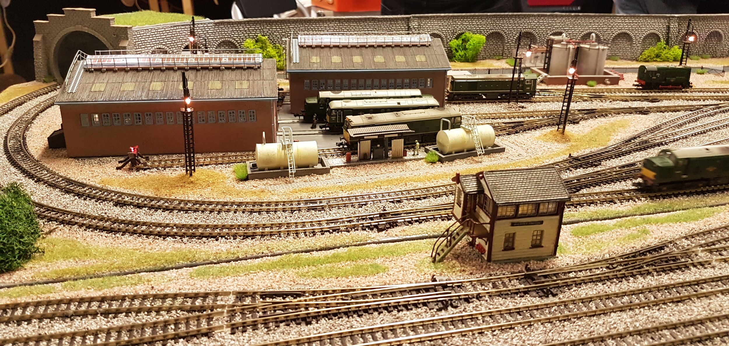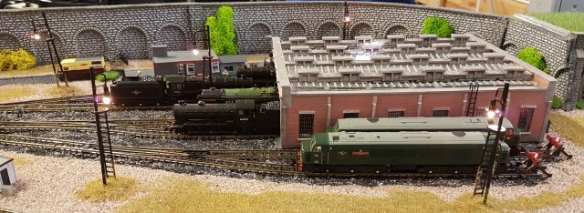 The WSNG modules on show gave additional ideas as to what can be built in a small space. The second one illustrated was running on DCC, and on the Sunday we were serenaded by a brand new Farish Class 40 with full sound on board. More impressive was the inertia built into the locomotive, that took over a circuit of the layout to come to a halt when the power was cut – and could be heard running down the gears.