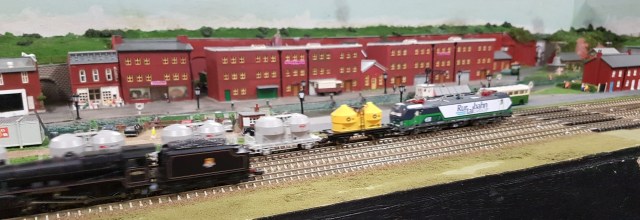 Another railway session on Sunday with our scheduled PlayDay. We had two layouts on the go. In the background, we have the usual circuit, largely monopolised by Simon and Graham’s American passenger trains.