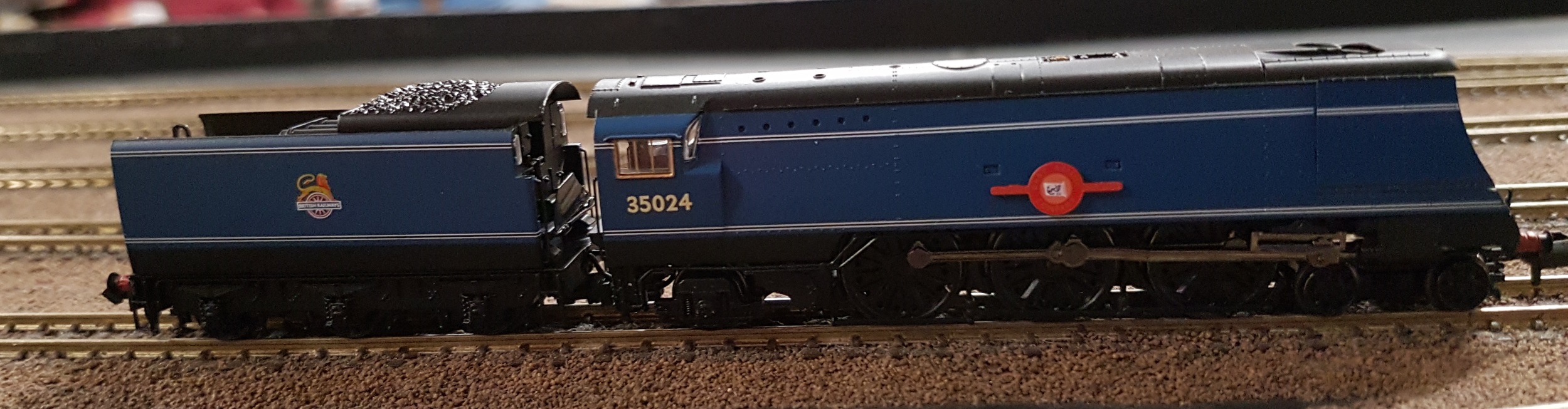 Mind you, Rails of Sheffield’s Advent Calendar has come up with a few good bargains – my unrebuilt Merchant Navy had a running in turn. The BR blue express livery only lasted from 1949-1953 or so, when blue gave way to green as BR found (rediscovering the wheel), that blue locomotives faded quickly. But it’s a beautiful livery, and suited most of the large locos that received it.
