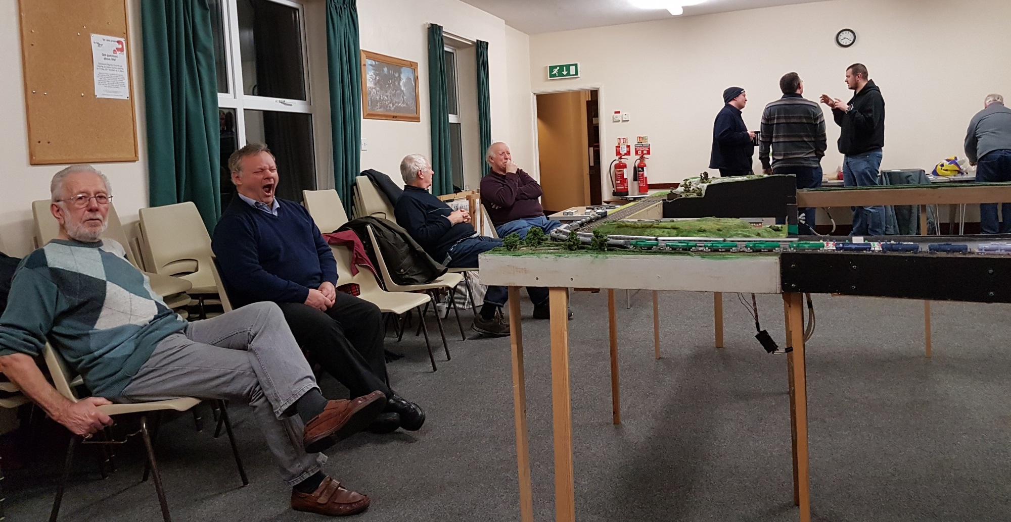 First club night of the new year, and despite the Chairman not being there due to anti-social working hours, 13 members enjoyed a varied procession of trains on the layout. Mind you, Ian doesn’t look too excited by proceedings in the picture below, or perhaps it was the Treasurer’s conversation skills?