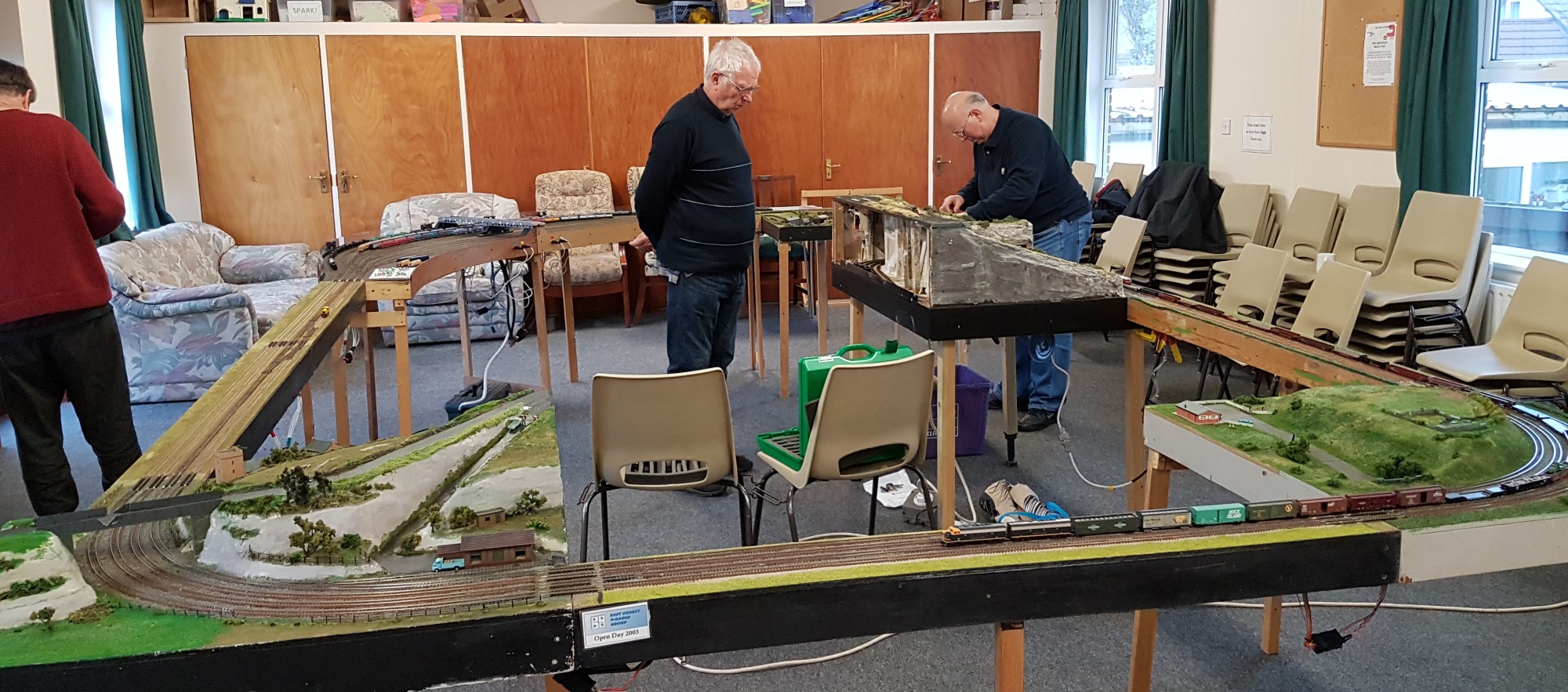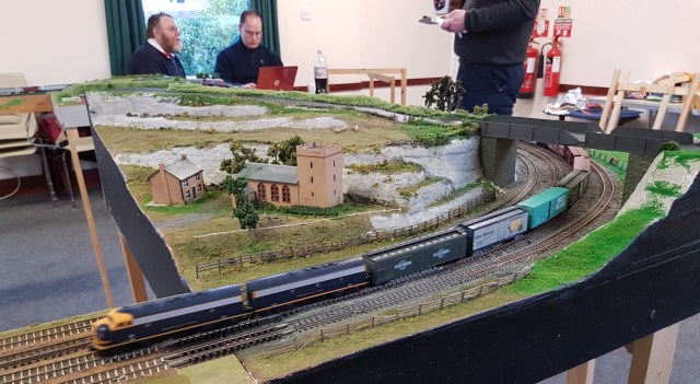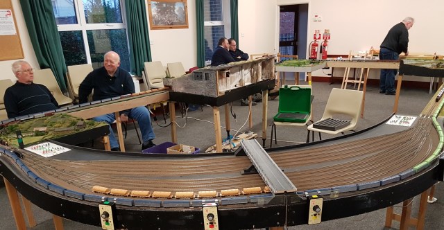 Just the eight of us at yesterday’s PlayDay, but we had a pleasant afternoon running trains. We quickly put together a large circuit…