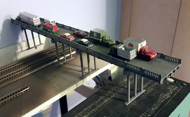 The road traffic on the bridge was again salvaged from Earl’s Wood. The picture below shows the bridge around its final position on the module.