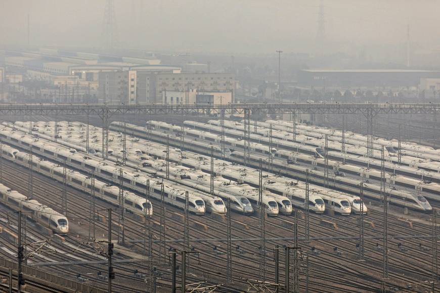 The Chinese rail system has been transformed by the introduction of bullet trains (as well as reliable internal airlines.) The photos below show high-speed trains preparing for the festival.