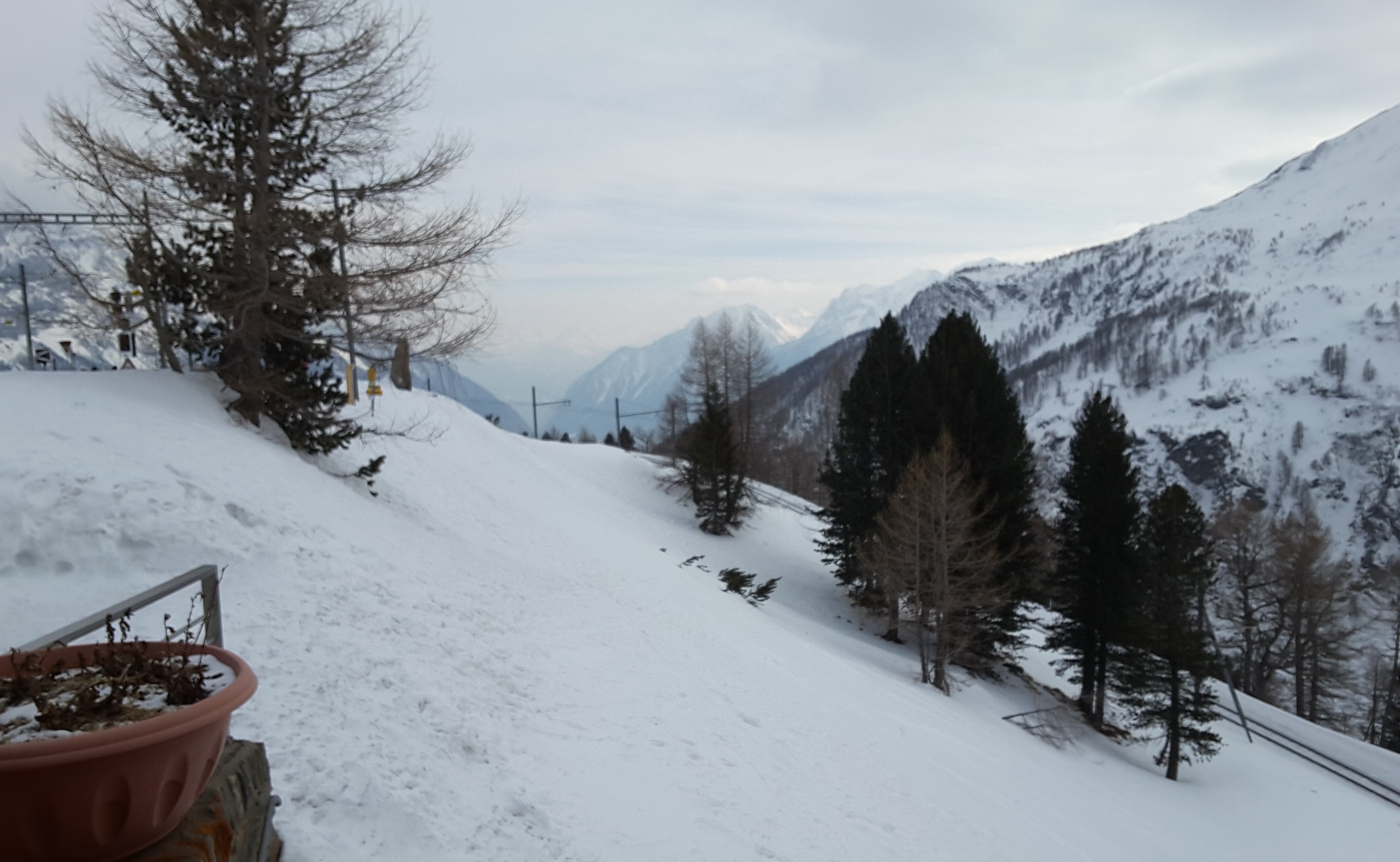 Weather is still very cold though slightly warmer at around minus 15 degrees. I have done a round trip to Tirano, Italy changing at Samedan and Pontresina with a stop on the way back at Alp Grum for a bite to eat and a hot drink.