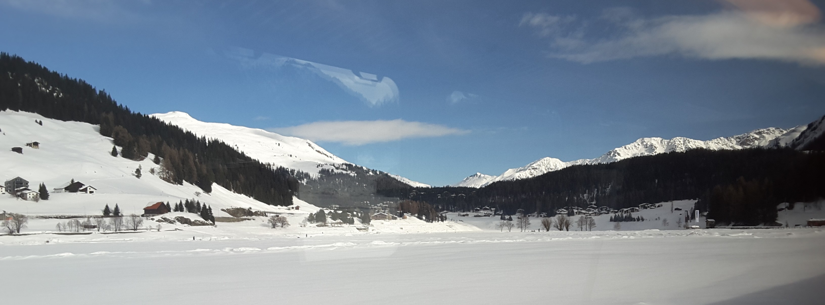 Another cold day. It is now snowing heavily here. Today’s jaunt Filisur – Davos – Klosters – Saglians – St Moritz – Alp Grum – St Moritz- Filisur.
