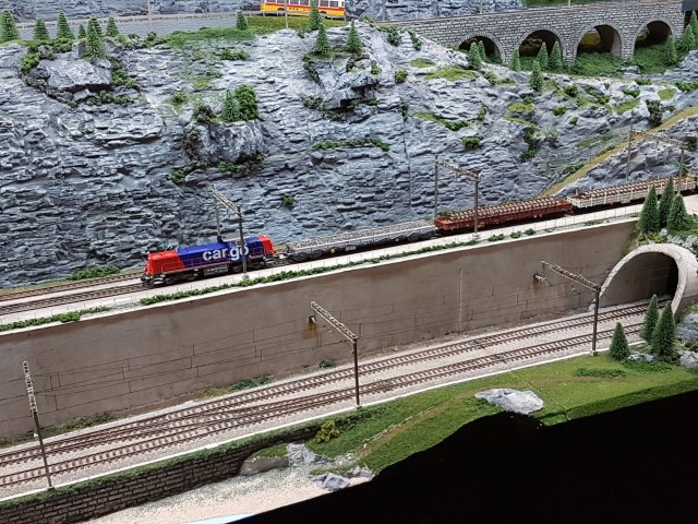The enormous SwissPass (HO and HOm) has its baseboards built at 45 degrees, to provide several layers of trains. It was very impressive, and gave the opportunity to show numerous SBB and Rhb trains. But I wasn’t really convinced. I know that the Swiss do some funny things with their railways, but this seemed a step too far. And there again, it’s all down to personal taste, I guess?