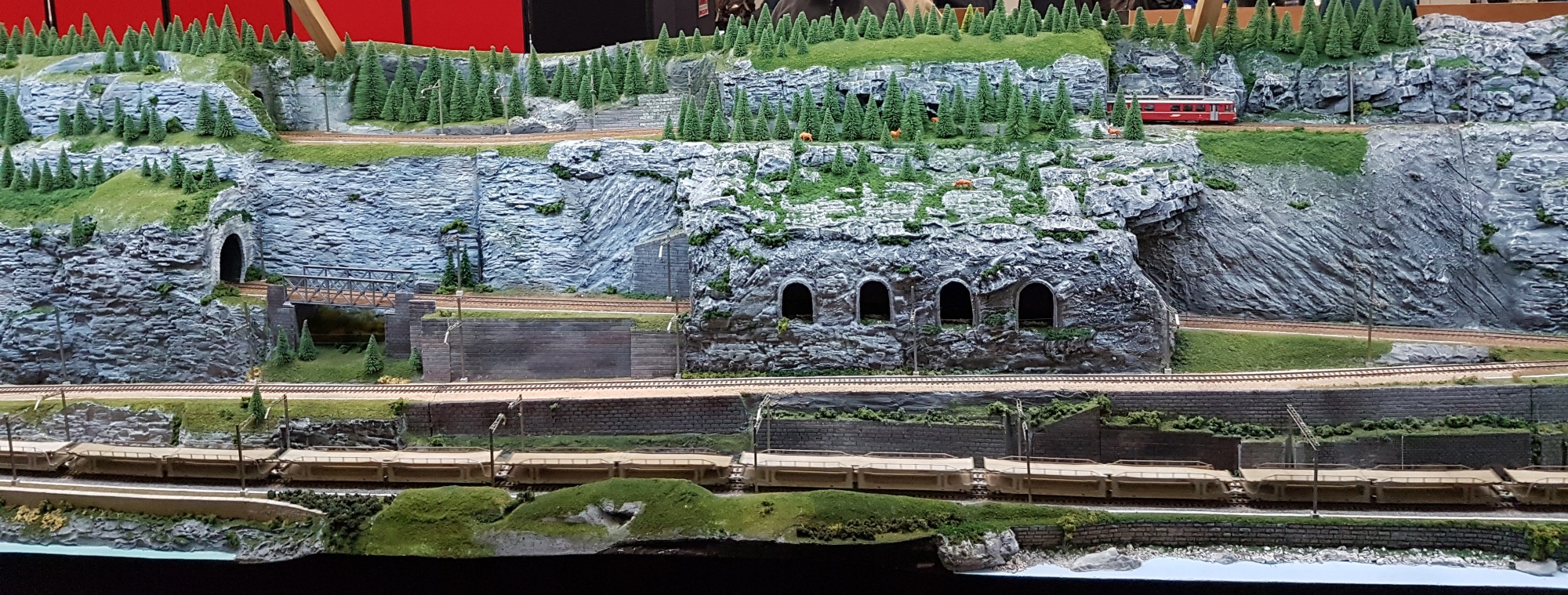 The enormous SwissPass (HO and HOm) has its baseboards built at 45 degrees, to provide several layers of trains. It was very impressive, and gave the opportunity to show numerous SBB and Rhb trains. But I wasn’t really convinced. I know that the Swiss do some funny things with their railways, but this seemed a step too far. And there again, it’s all down to personal taste, I guess?