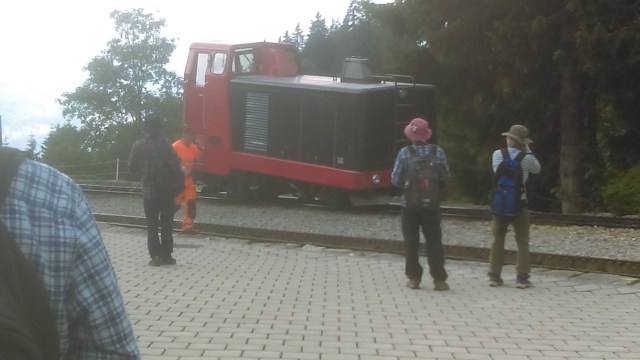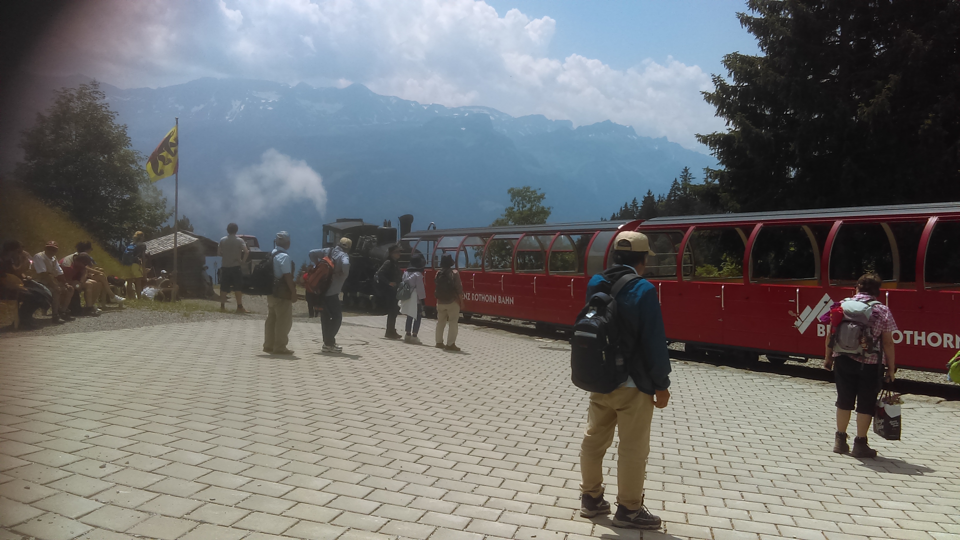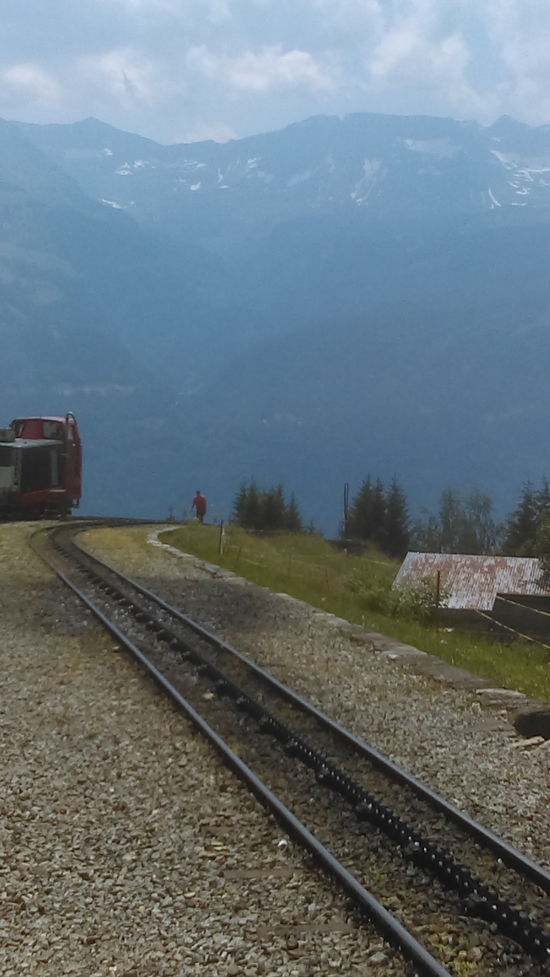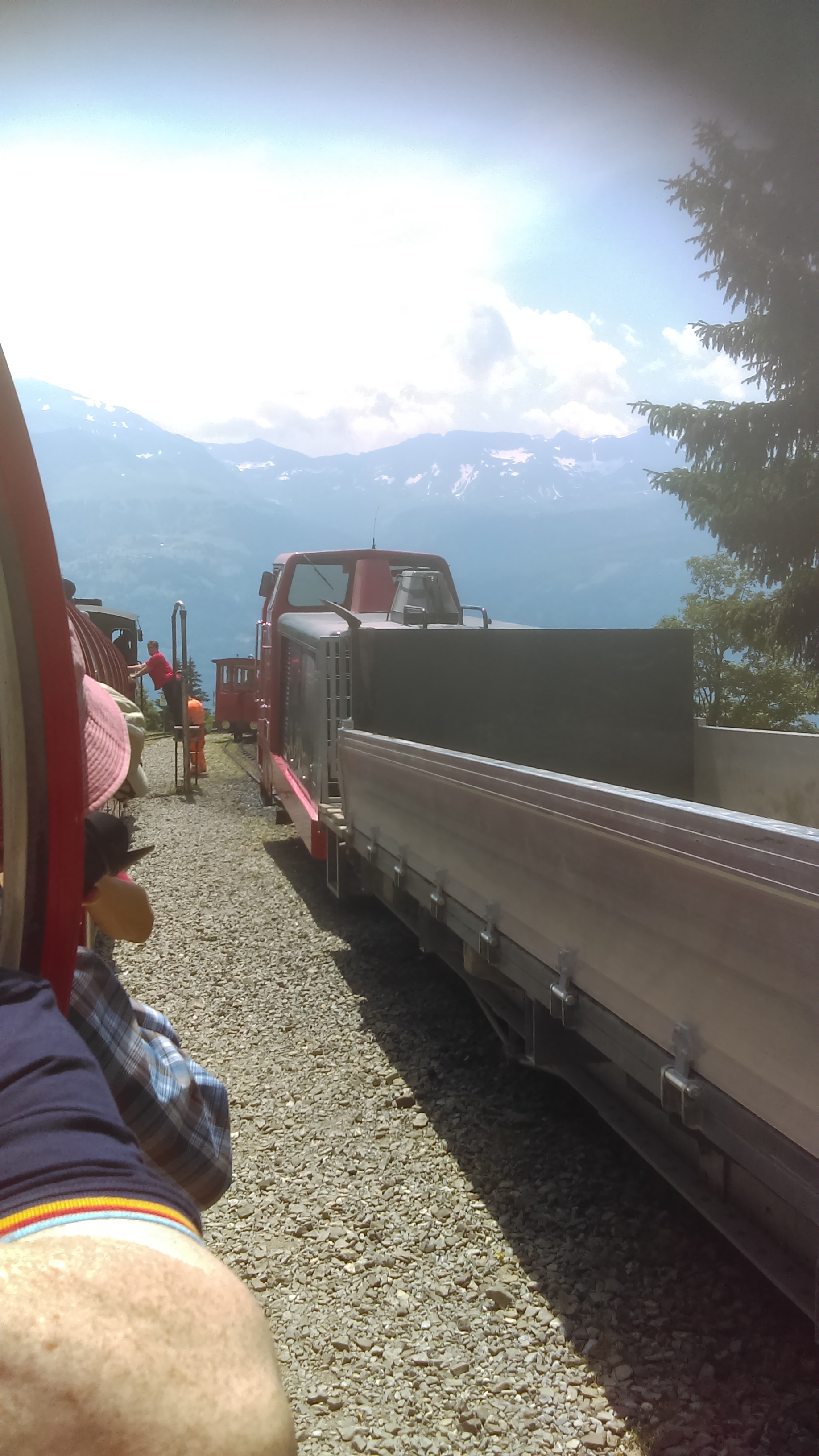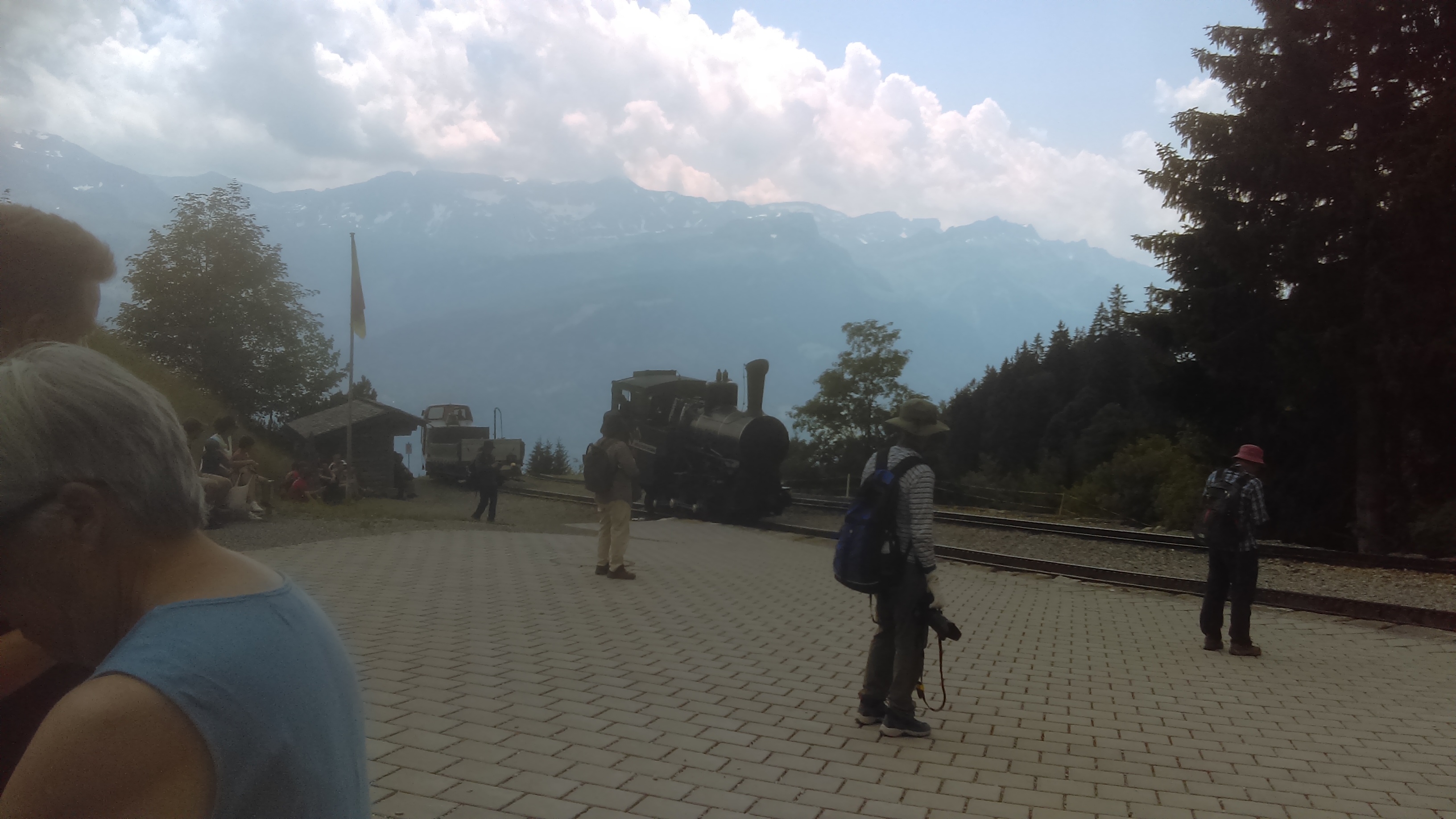Great trip up the Rothorn and even found their tree that they hang up all the lost baby dummys etc. After a break for a beer in a packed restaurant, we made our way back to the trains and again got on No.12’s train. We were talking with a couple about the loco on the trip up. By luck this was also our loco for the trip down….