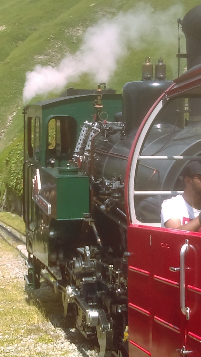 On Monday had a wonderful trip up the Rothorn with locomotive No.12 doing all the work. We arrived and bought our ticket. We were greeted by the sight of two steam locomotives Nos 2 & 12. Was lucky enough to get on No 12’s train. This is the first time for quite a few years that we have had the pleasure of this locomotive.