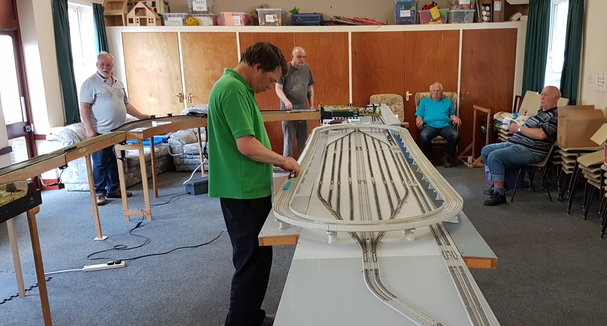 Meanwhile, back in Earlswood, it was a boiling hot afternoon, and perhaps not ideal for playing trains. However, we got a large circuit up and running, including Paul’s modules – then had a little rest. Though no-one (except Phil) could face a curry afterwards.