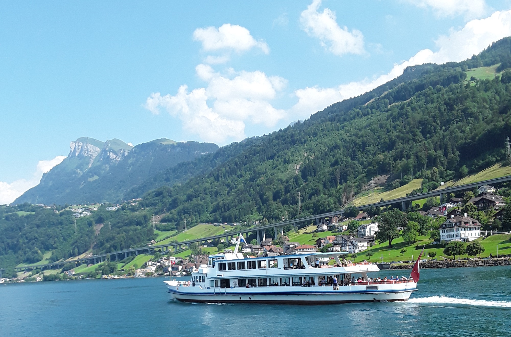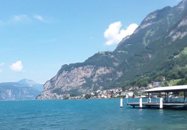 Caught bus to Kussnacht only to see our connecting train to Arth Goldau standing in the platform. By the time we got onto the platform the train had left. We had to wait 30 minutes for next train and luckily on arrival we got an immediate connection on train through the Gotthard Base Tunnel to Bellinzona. We then returned over the old Gotthard route to Fluelen with a change at Erstfeld. We left Fluelen on boat back to Vitznau.