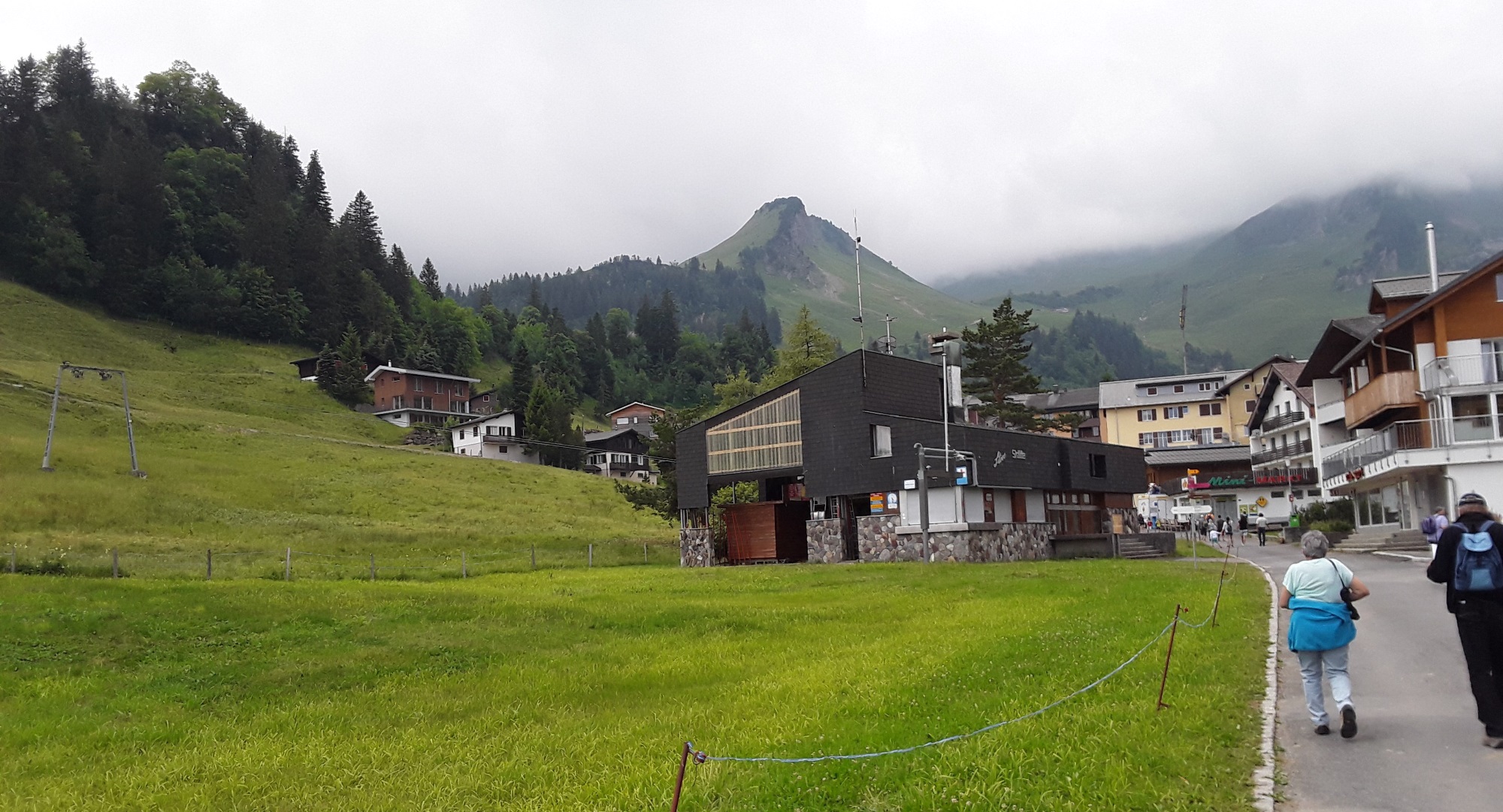 First thing today we headed by bus via Schwyz to the recently reopened Stoosbahn, which is the steepest funicular in the world. It was an experience! Shortly after leaving the valley station it is like going up a wall in an outside lift. After visiting Stoos we descended and caught a bus to Schwyz Bahnhof for trains to Luzern charging at Arth Goldau. In Luzern Allan settled down to do some grieving [not more grieving? Ed.] whilst Ron went into town to walk round. We returned to Vitznau by boat. Now have to repack our cases for transfer tomorrow to Filisur.