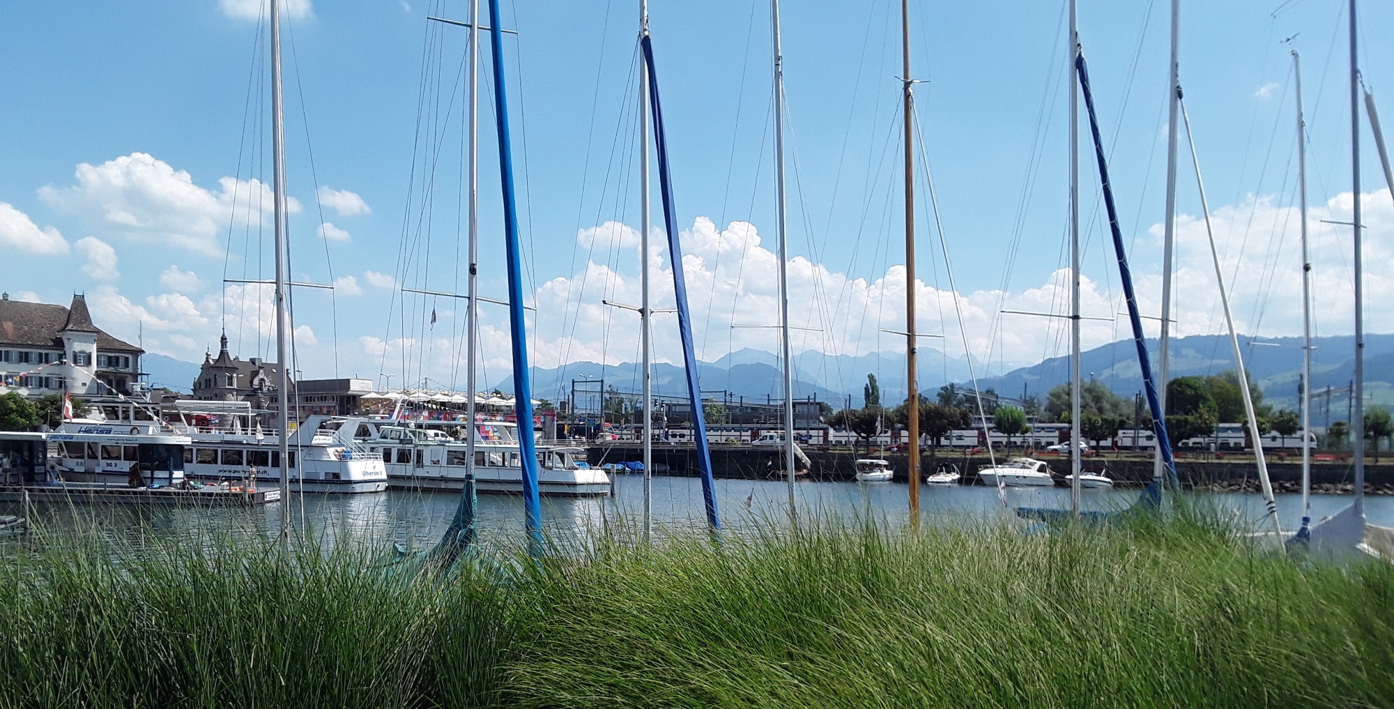 Another very hot day. Set off by bus to Rotkreuz changing at Kussnacht. We then took train to Zurich and following a couple of train journeys we took a boat down Lake Zurich to Rapperswil for train back to Kussnacht.
