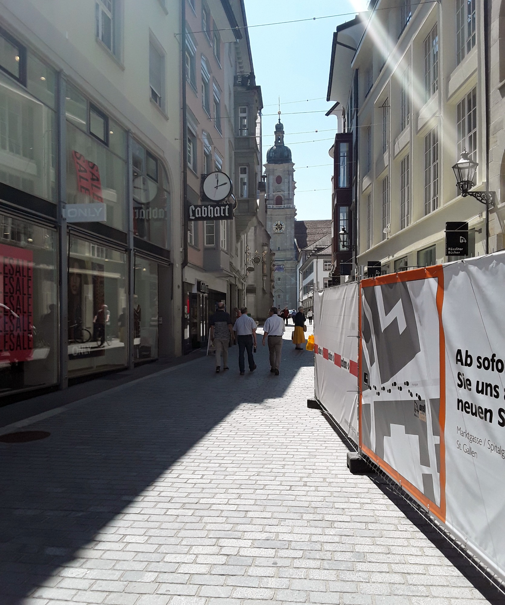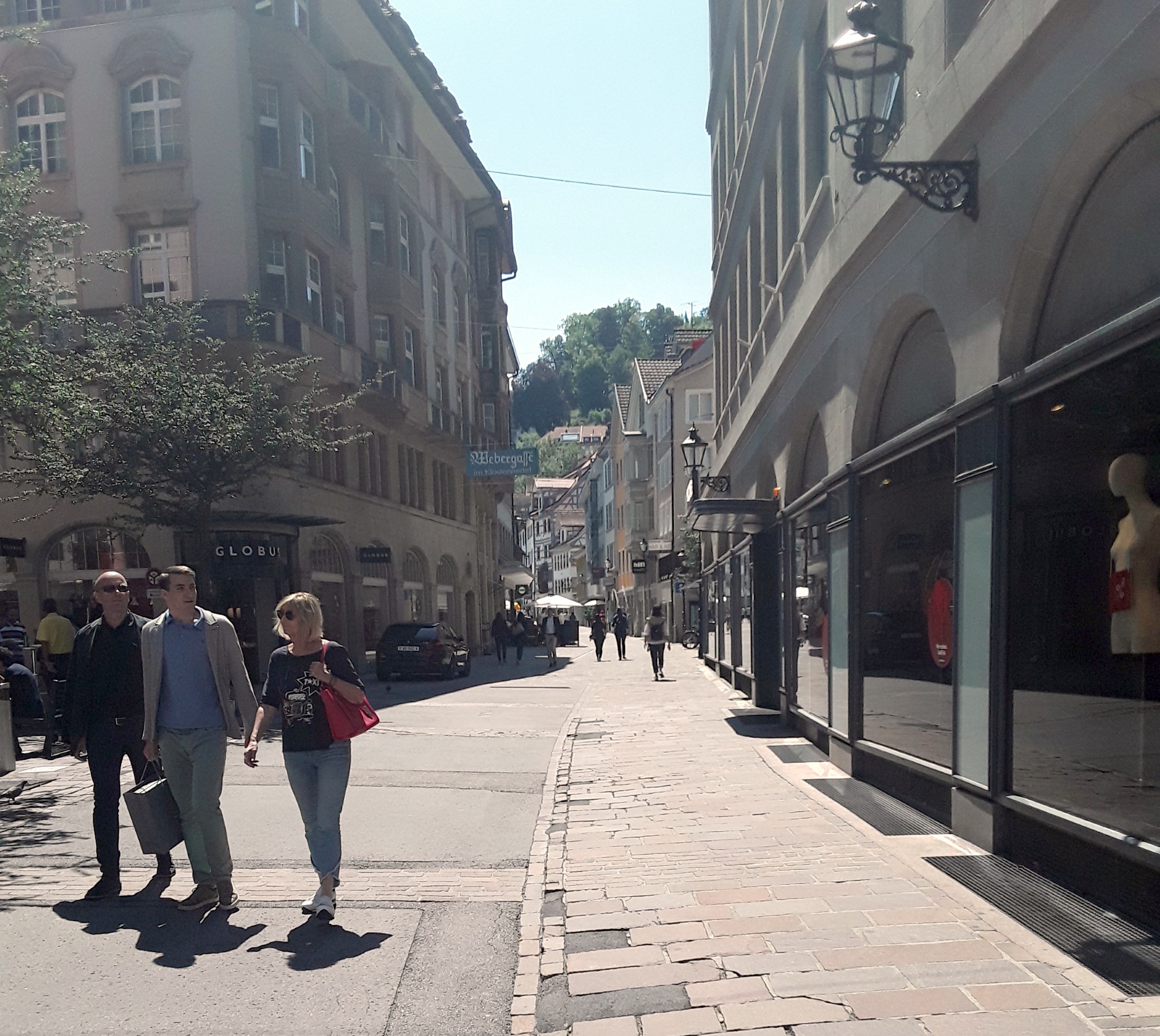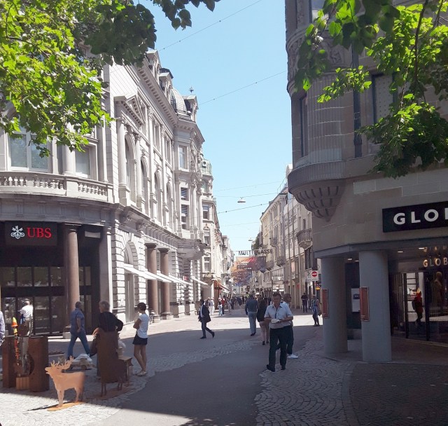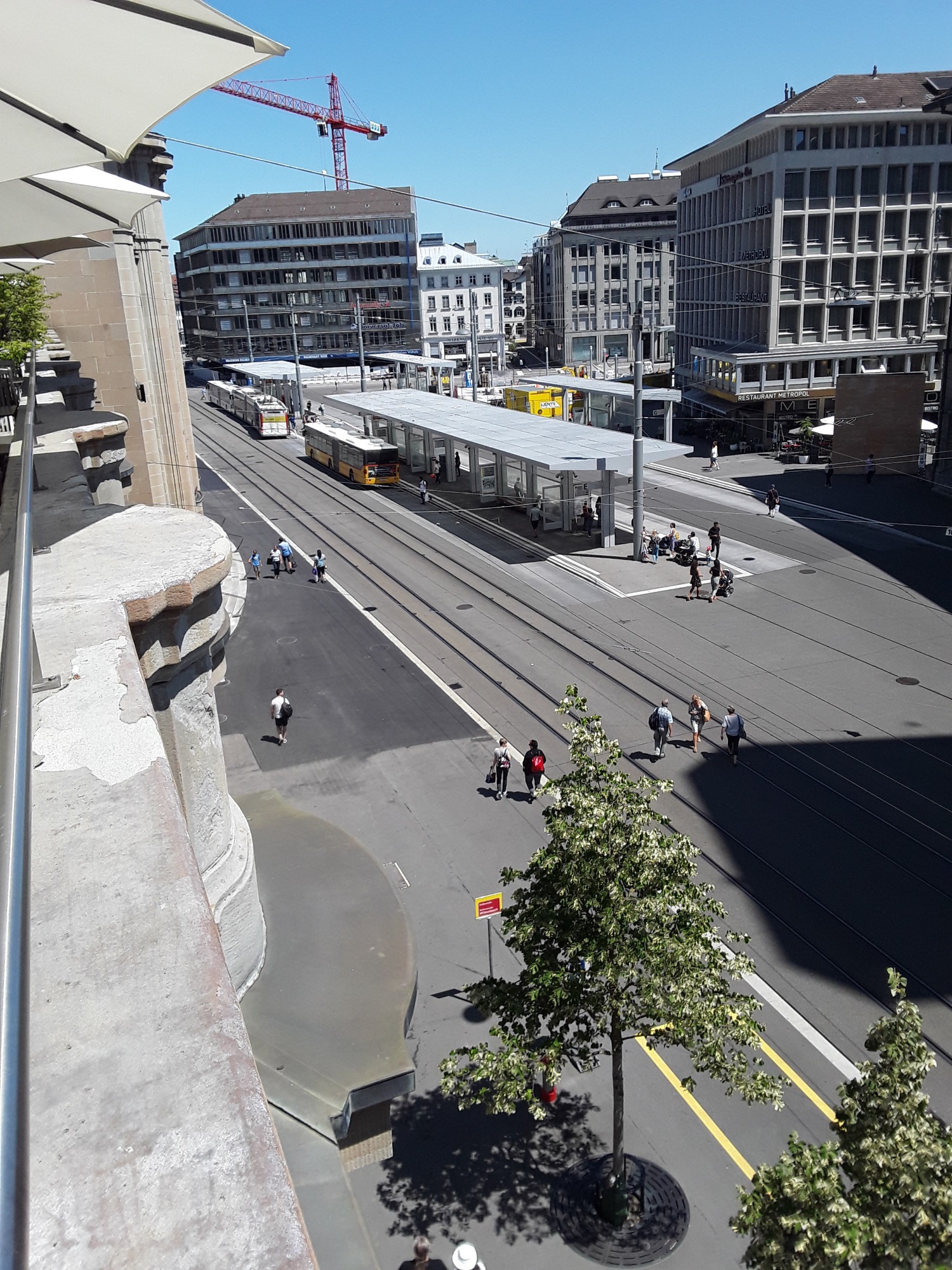 Another sunny day. Today was an out and back journey by train to St Gallen. When we got there we visited the large model shop but Allan found nothing he wanted. Then Allan returned to station to do some grieving whilst Ron went for a walk round town and do some shopping. We met up got a late lunch time snack on the balcony of the Mirror Restaurant which is above the station.