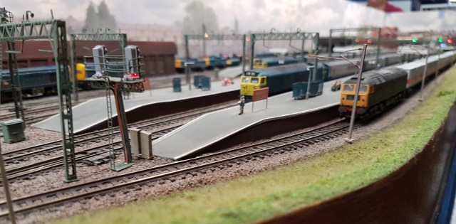New Dalby – Research Division was one of the ‘different’ layouts on display, modelling a modern railway technical test centre, and offering a chance to run all those luminous yellow items of rolling stock.