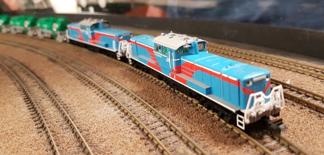 Lovely Japanese train,although my inner nerd refuses to let the “B-B-B” point go. The Japanese locomotives are DD51’s, which I am determined to make a model of one day, and are B-2-B wheel arrangement. Apparently the pressure on the middle wheels can be varied so the weight is better spread for industrial lines. If you look at the centre bogie you can see it is much smaller than the outer two.