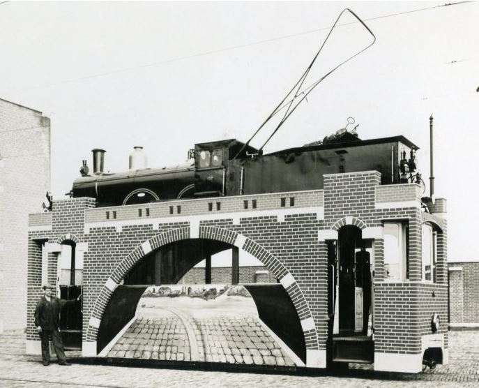 And the modelling challenge for the day. A little something from the Haagsche Tramweg Maatschappij (Holland). An electric streetcar carrying a dummy steam locomotive in 1908. No one would believe this if you built one! (Or more likely they’d complain that you’d left out the overhead wires, or got the brickwork with the wrong coursing.)