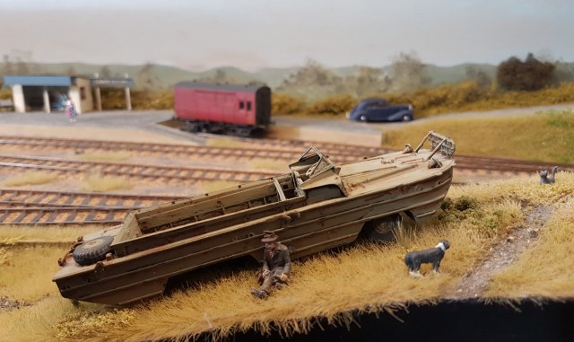 Lower Exbury, built in P4, was at last year’s Uckfield show. It’s a typical minimum space light railway/branch line terminus, but stands out due to the cameos on view – not least the DUWK, with attendant tramp (or owner) and the cormorant on the quay. Definitely worth another look.