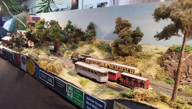 Avyn-A-Llyin, in 009 is vaguely Welsh (hence the name) but all sorts of stock runs. I suppose that is no different from Welsh preservation lines these days! A major feature is the beach and sea, and more 4mm flesh on a layout than I’ve ever seen before. (Fortunately, most of it was modestly covered in the right places.)