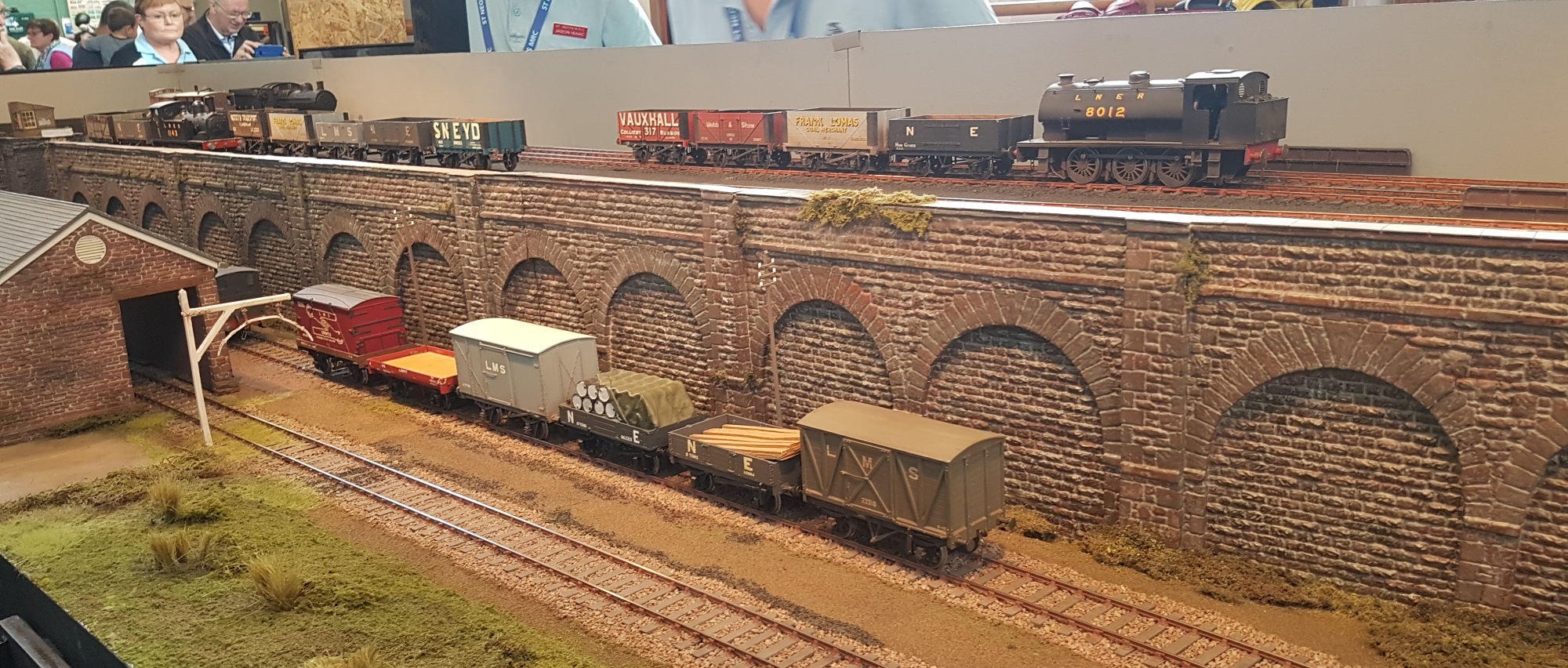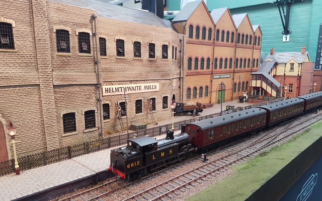 Helmthwaite and Chapel Lane, in O gauge, is dominated by two large industrial buildings, Osborn Engineering and Helmthwaite Mills at one end of the layout. These also hide the staging for the high level Chapel Lane yard where there is a fully operational wagon hoist between the two levels (LMS and LNER). Tidy modelling throughout, and although it is a branch line, there was always something moving.