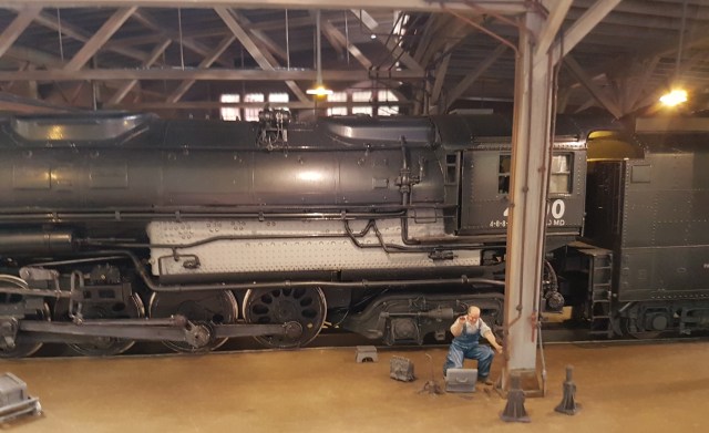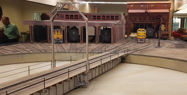 And finally, Laramie Engine Shed in O-gauge (the USA version). It models part of the Union Pacific Engine Terminal at Laramie, Wyoming. I’ve seen this layout a number of times, but the lack of barriers this time allowed some close up inspection of some very good modelling. Which ESNG member does the gentleman in the second photograph remind you of? (Sorry, no prizes.)