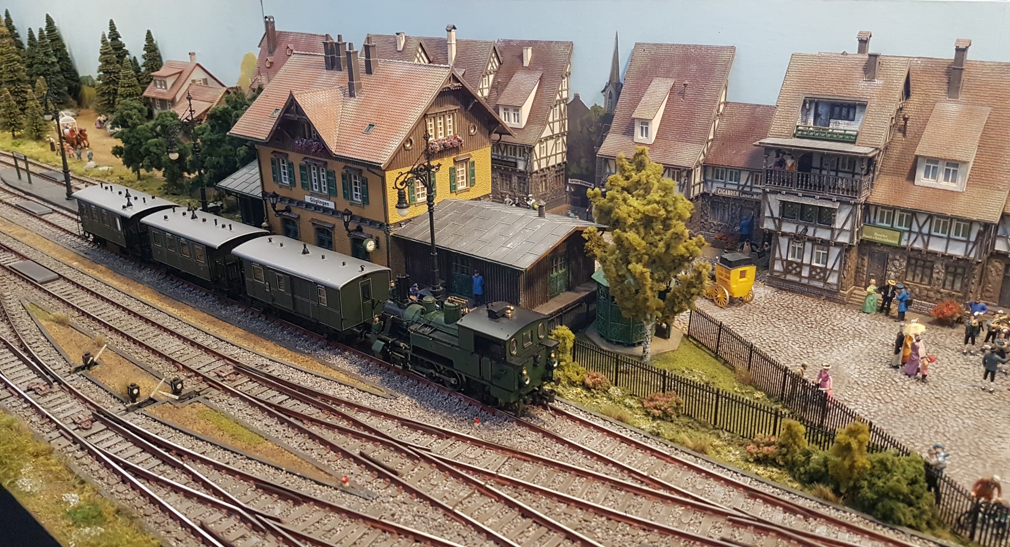 Guglingen, in HO models a German branch line terminus set around 1900, with stock from a number of the independent state railways of the time. Good to see a continental layout on show – they are also a rare beast these days.