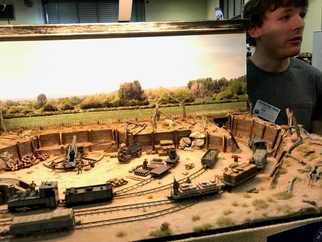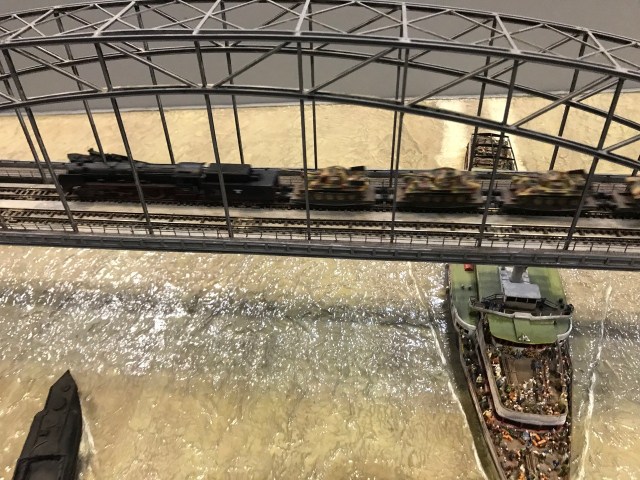 Bridge of Remagen and the narrow gauge World War I narrow gauge were the highlights. The desert scene was Iraq in World War II and a brilliant example of forced perspective – impossible to capture with an iPhone. It did have running trains.
