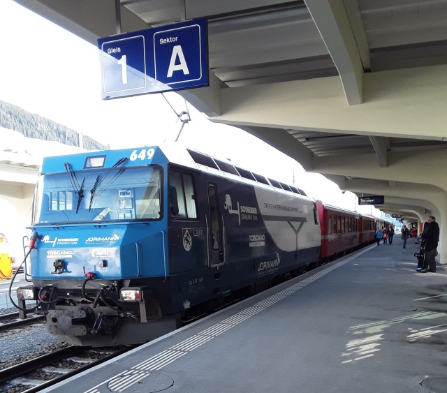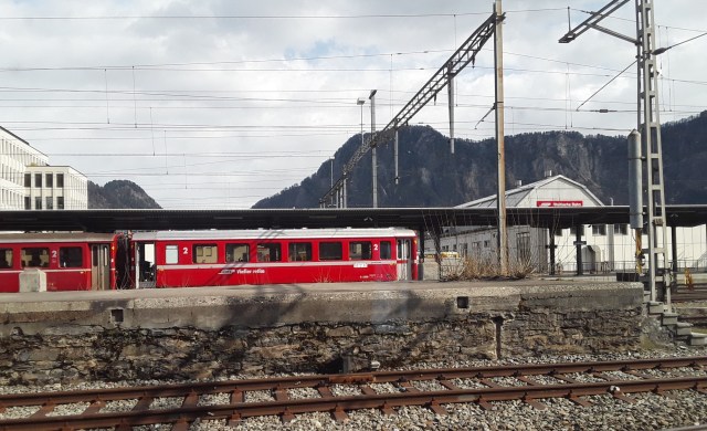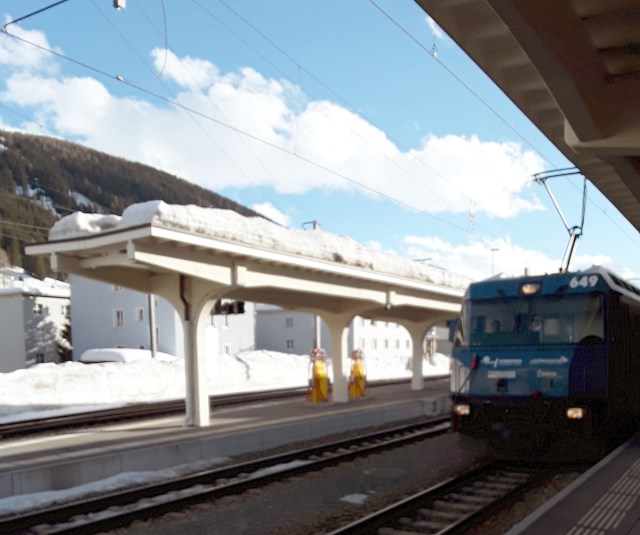 An early start – left home at 0445 GET for 0725 flight from Heathrow to Basel. Landed 15 minutes early but a bumpy landing due to strong winds. Just missed bus into town and as a result had to wait 45 minutes for next train to Chur, not helped by a late change of platform. Just arrived in Filisur at 1500 CET. Hope to make quick trip to Davos and back at 1600.