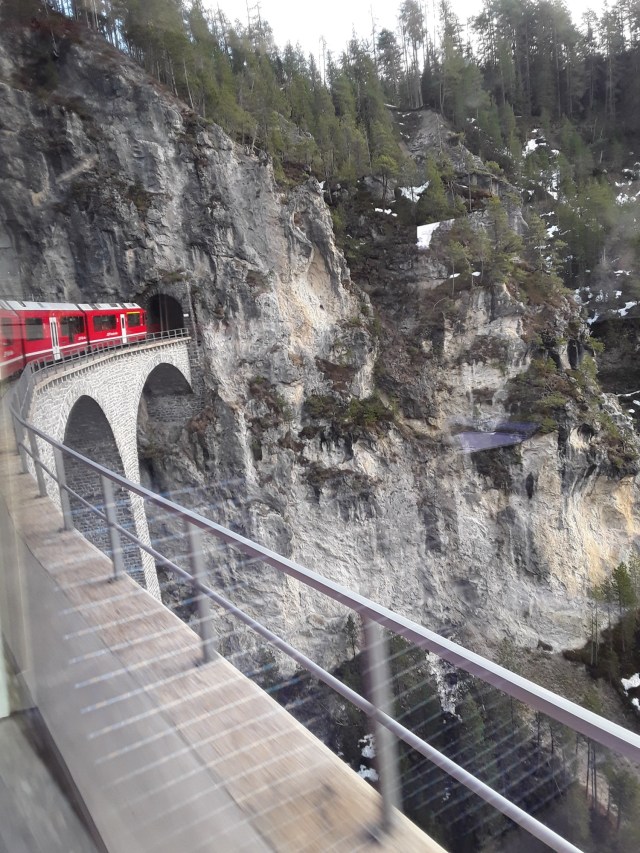 A famous spot – RhB train entering tunnel from Landwasser Viaduct – looks better in Switzerland than on a GWR branch line?
