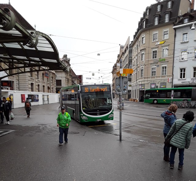 Tram station and airport bus outside Basel SBB