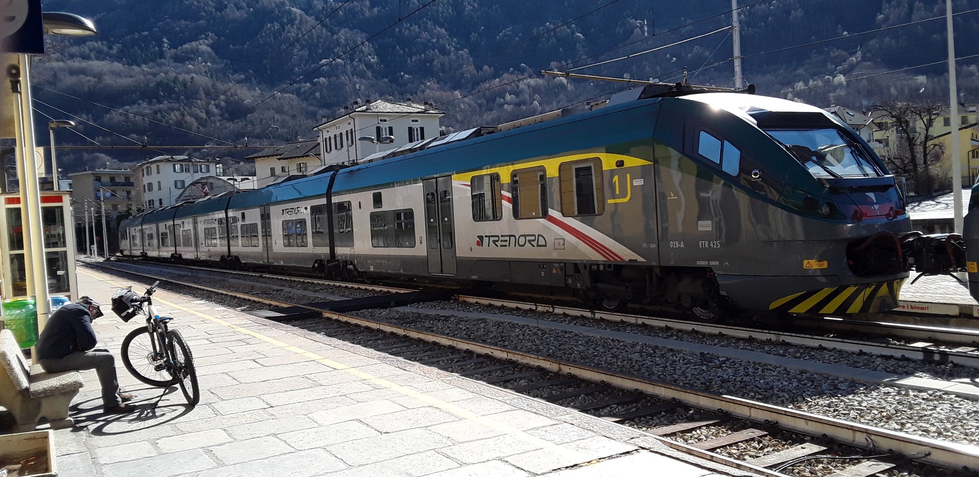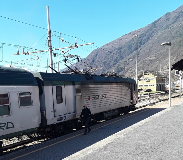 Italian train ready to leave Tirano for Milan. The weather has looked up!