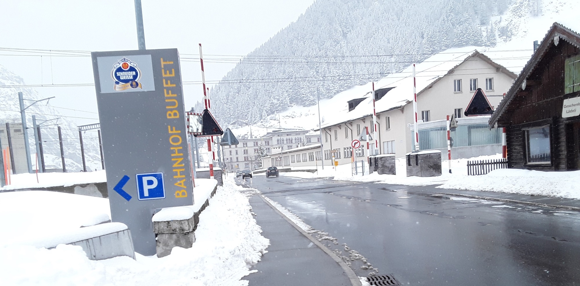 Andermatt station. I reckon the Apres-Ski Bar is the best place to be in weather like this!
