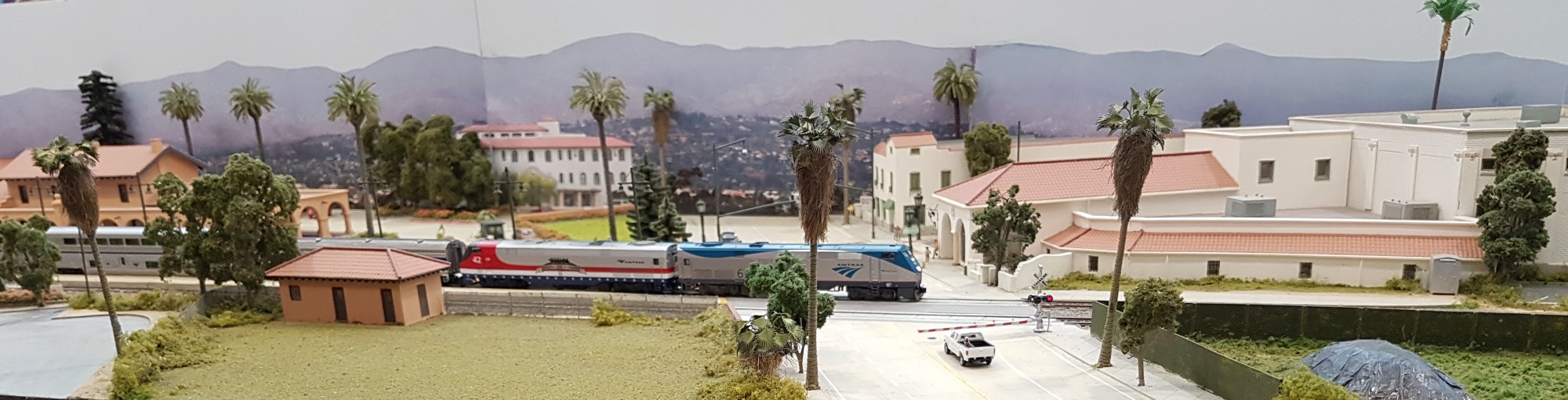 Another old friend is Ian Lampkin’s Santa Barbara (N). A near scale model of this BNSF station in California, it’s good for trainspotting! Ian seems to be ubiquitous at shows, and is bringing his Banbury layout to our N Gauge SouthEast exhibition.