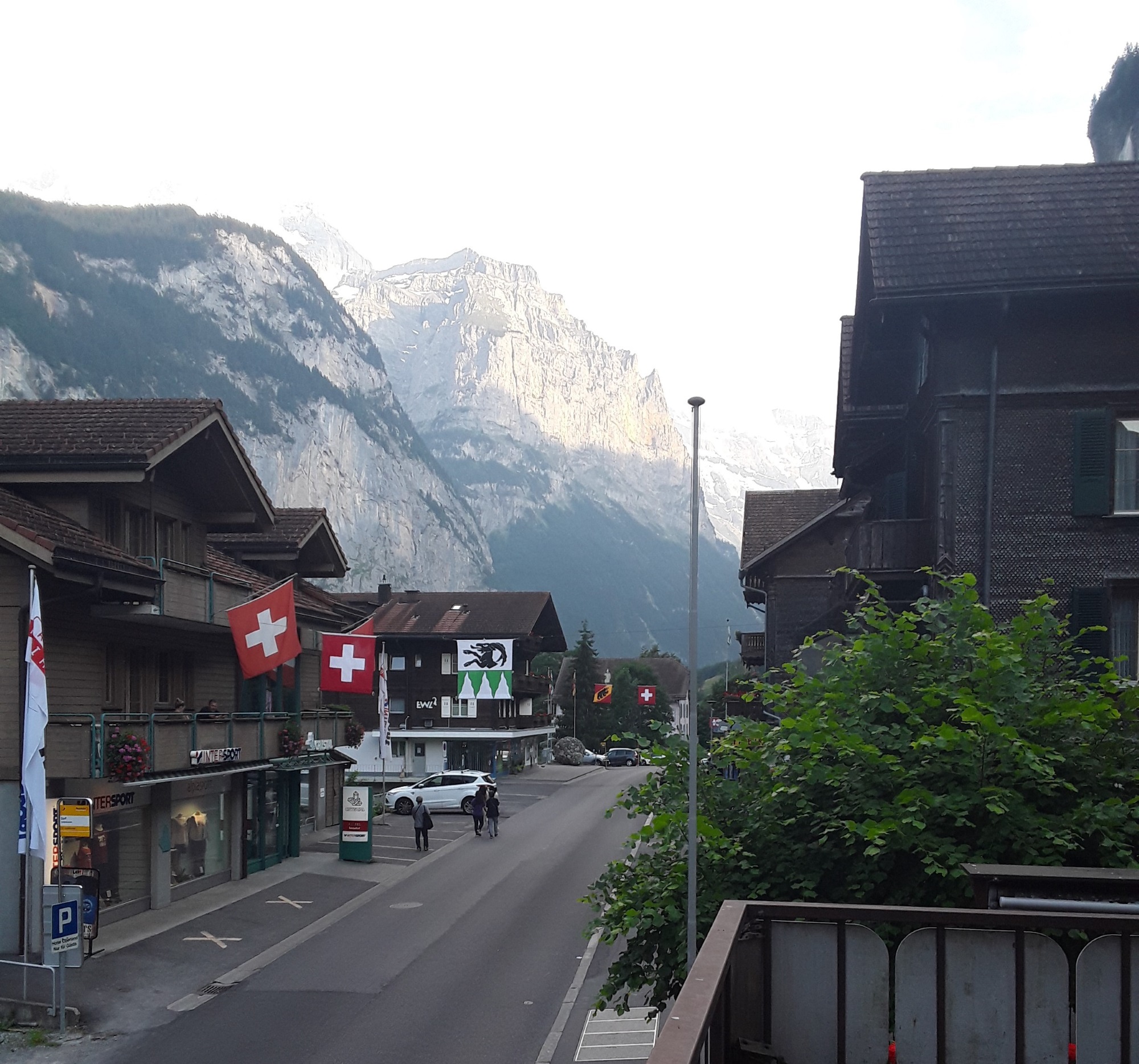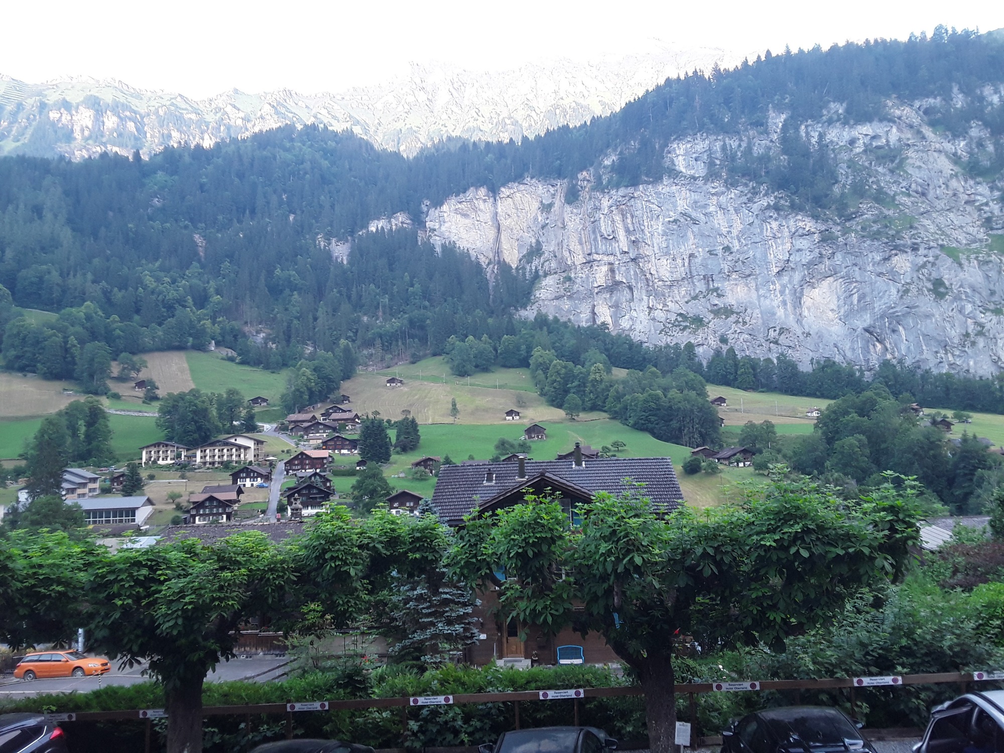 We walked outside the terminal to find a bus into town waiting. We managed to get to the station in time to catch the 1559 Interlaken train and thus reached Lauterbrunnen at 1825. Only pictures today are those taken from our balcony.