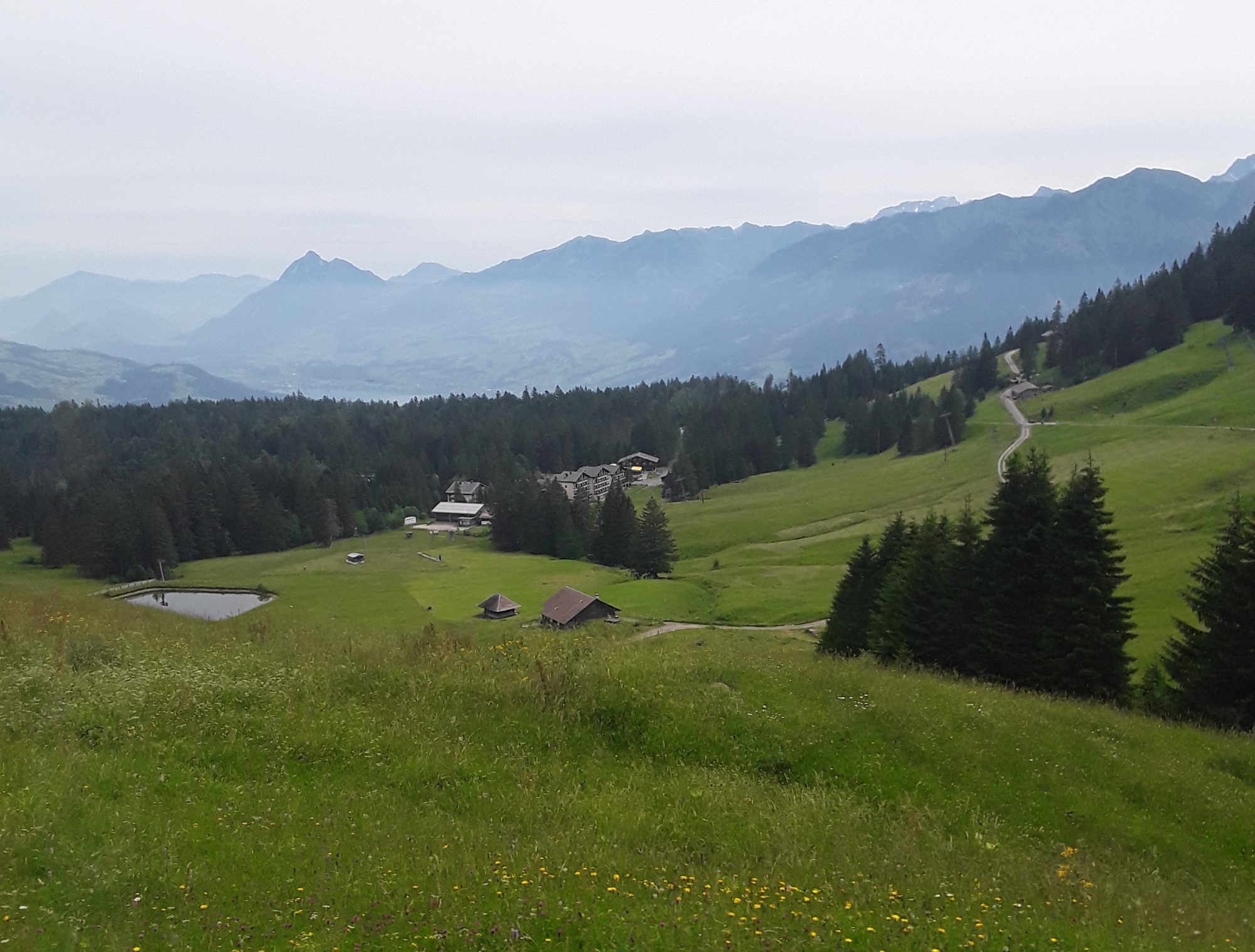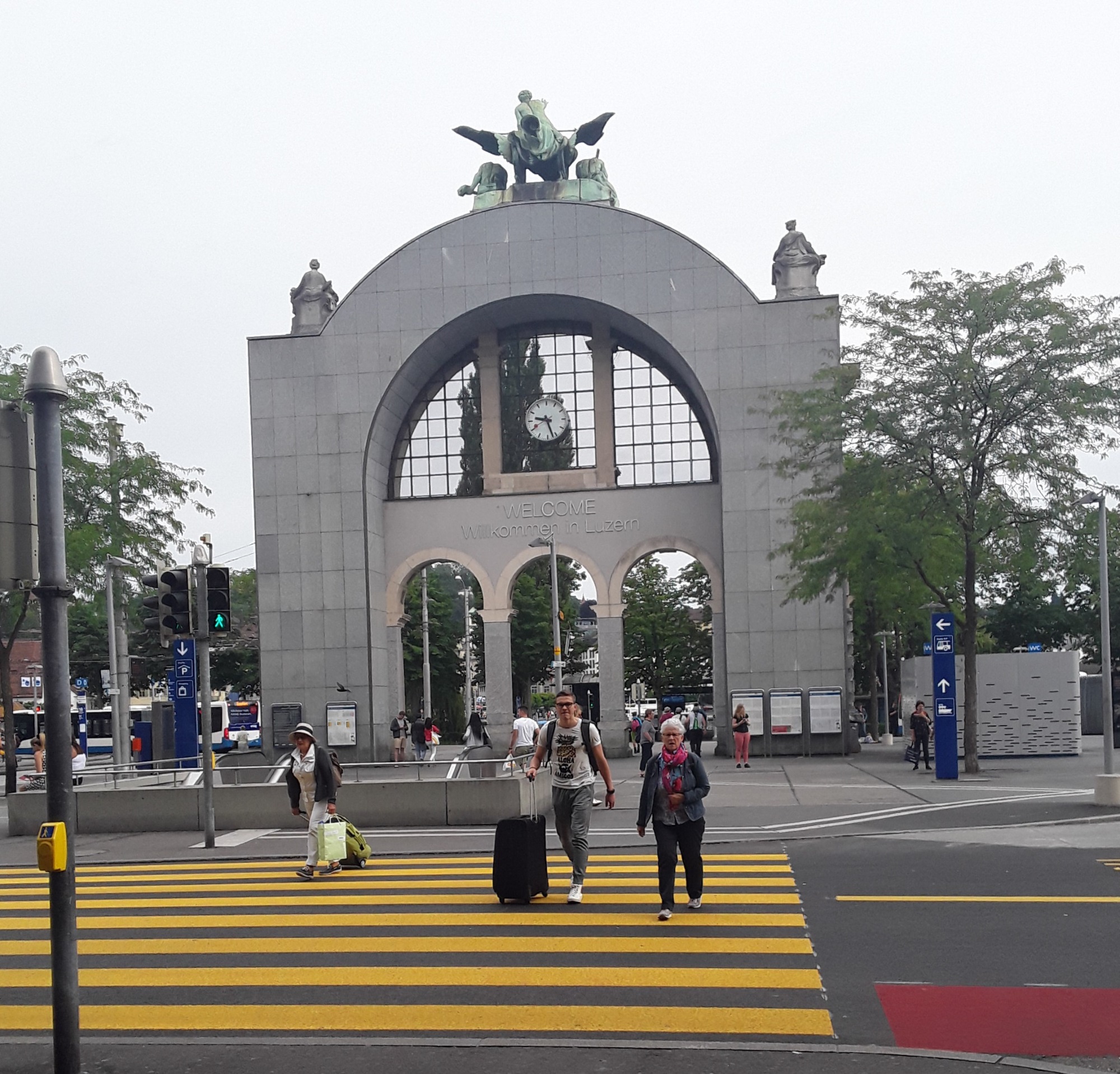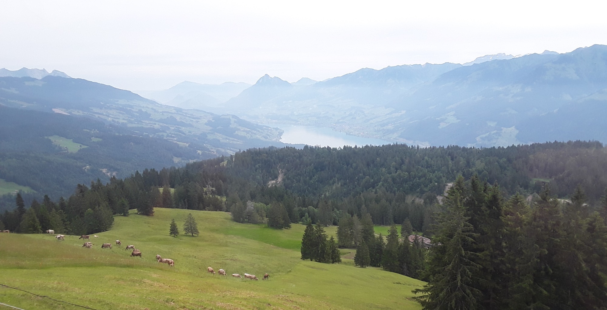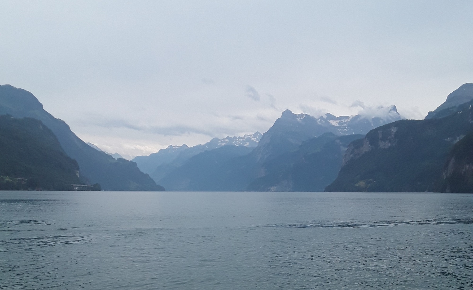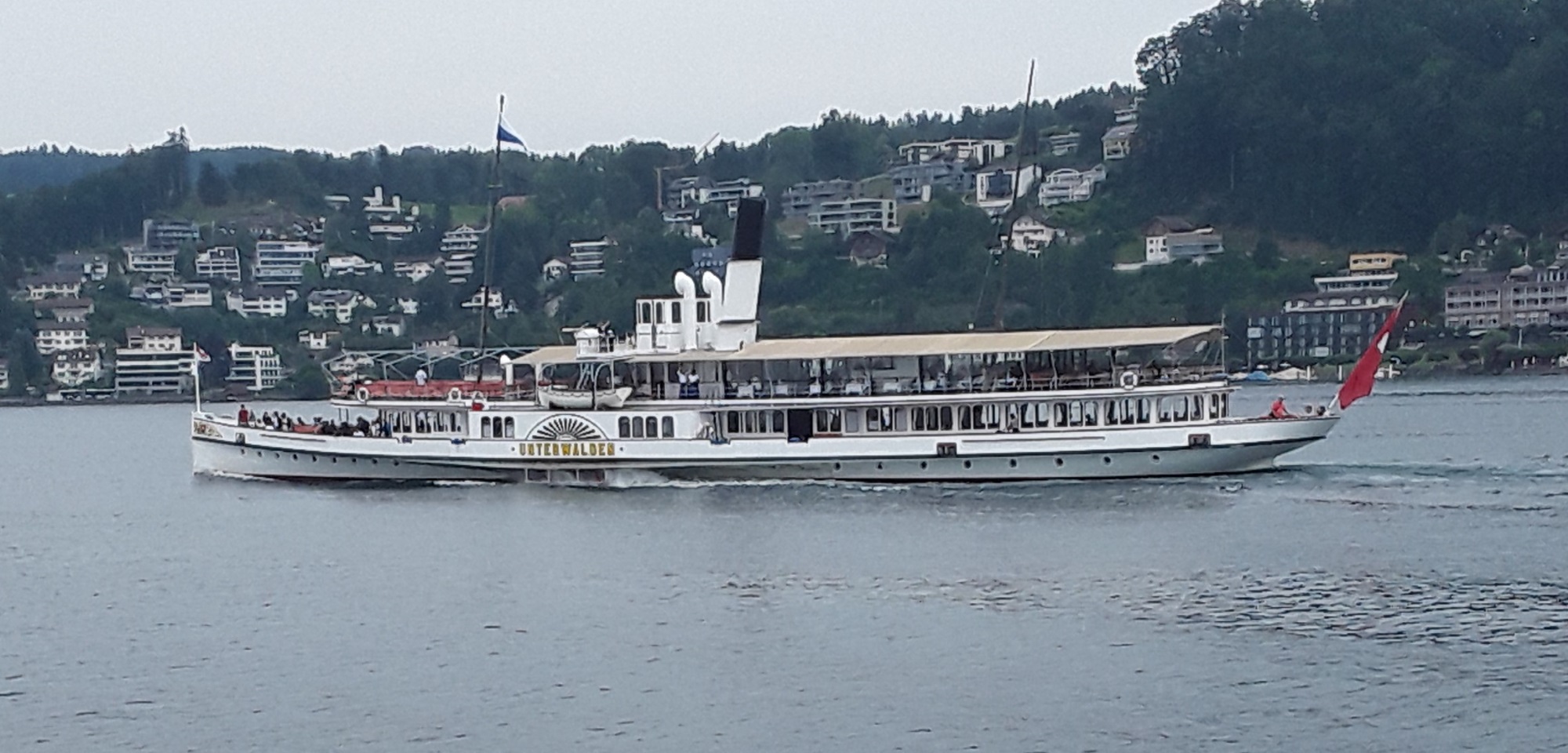 Made our way by bus and train via Kussnacht and Luzern to Giswil from where we took one of only three postbuses a day via Sorenberg to Schupfheim. The start of the way to Sorenberg was up narrow roads with passing places and hairpin bends. We started with only 6 on board including the driver but when we stopped at a large parking area we picked up a large group of infant school children with their teachers/guides. They were well behaved until they got off 20 minutes later in Sorenberg. Everytime the driver sounded his horn on the hairpin bends they clapped. From Schupfheim we took a train back to Luzern walked over to the quays to pick up steam paddle boat to Brunnen. Here we had a rest overlooking the lake before taking a bus back to the hotel