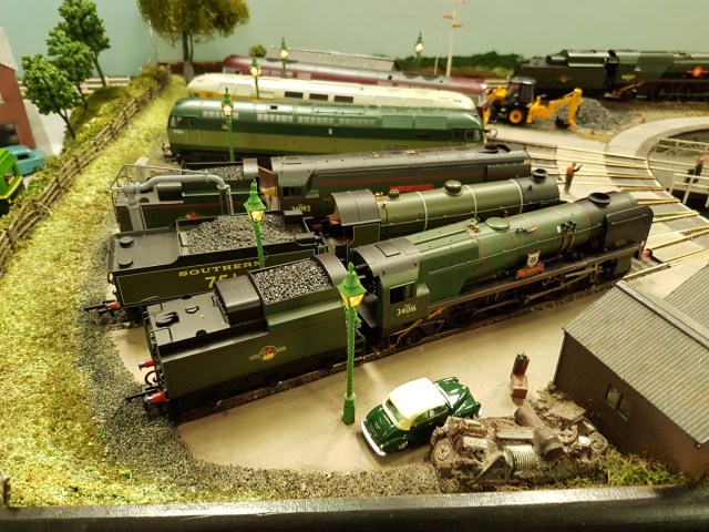 On the Sunday, we had an ‘OO’ loco shed layout opposite us, with some fine commercial models on display, and lots of little cameo scenes around the layout.