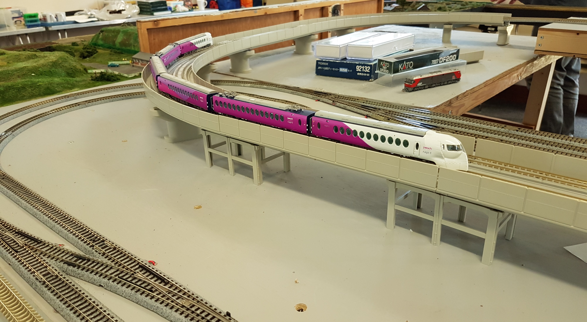 Paul brought along his new modules, combining bullet trains with an N-mod circuit.