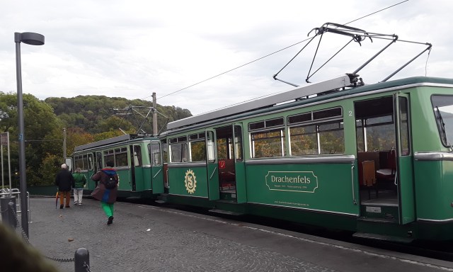 Drachenfelsbahn train at summit.