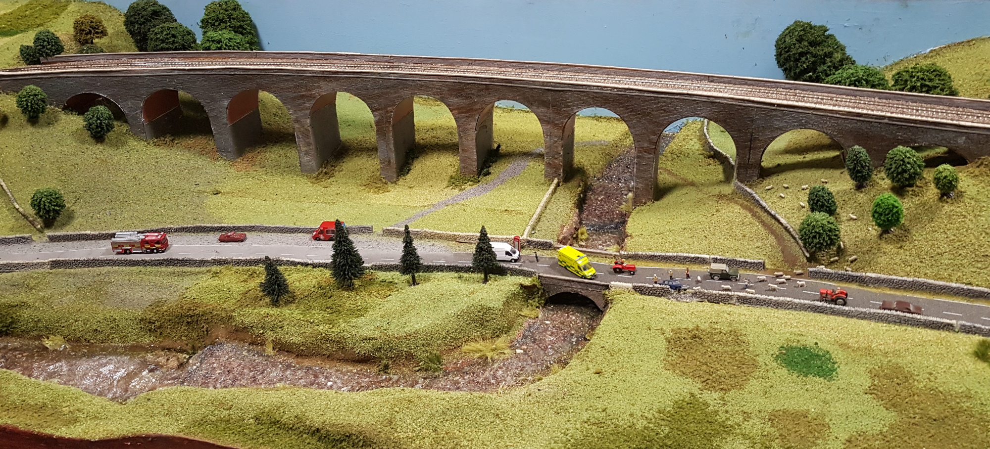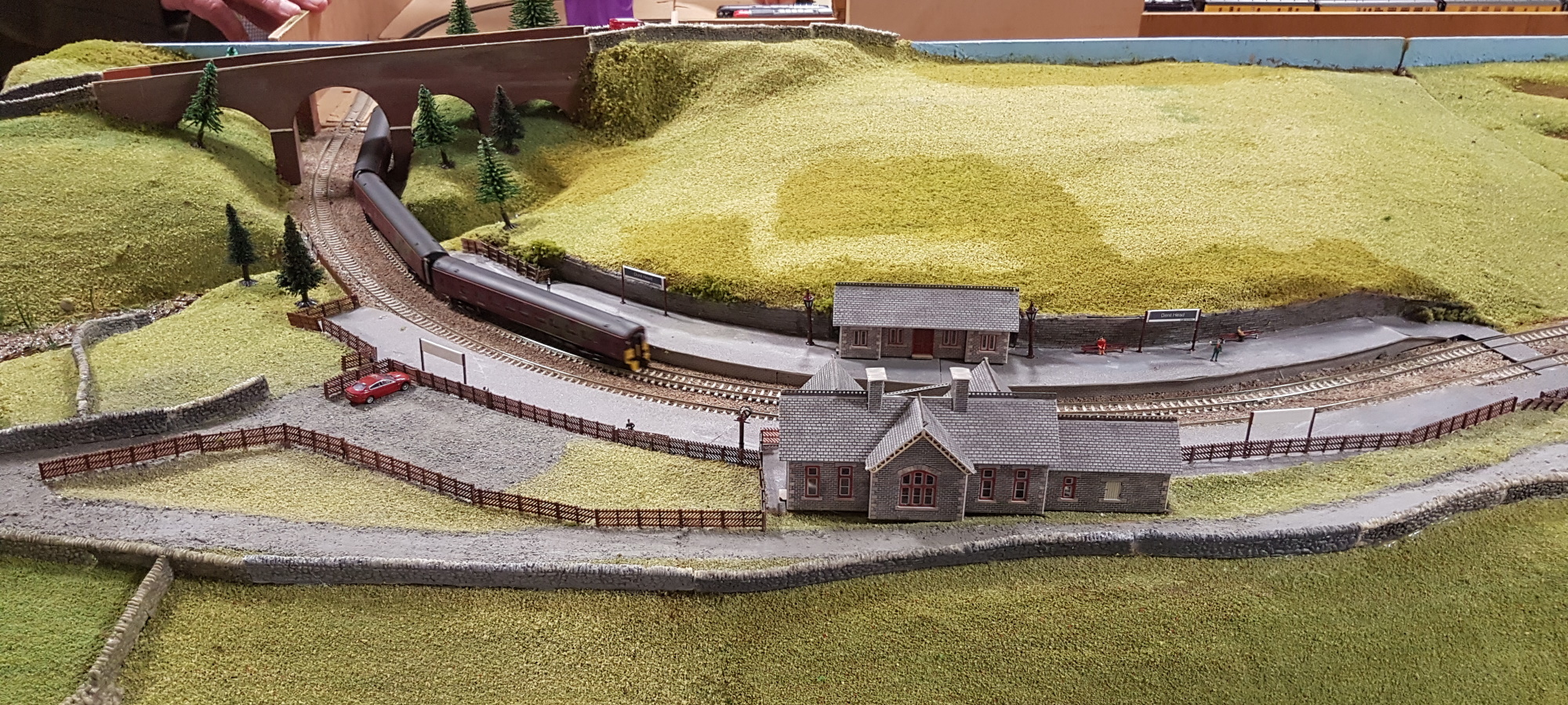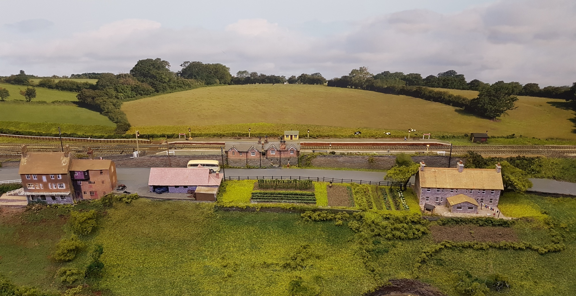 Wickwar (N) is always worth a look. A lovely slice of English countryside, and the trains passing through are almost a bonus. One of the operators was showing off the moving bus in the first photograph, that worked well, except when he drove it into a stone wall. There is a nice bit of animation, as the lady standing outside the station raises her arm to hail the bus. Of course, she is still standing there after the bus passes, so really it shouldn’t stop – just like the real thing….