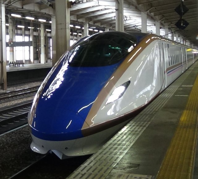 To follow my excursion in to the Japanese countryside today, you will need a map. I went a little off the beaten track. Sendai to Omiya (north of Tokyo), Omiya to Echigo-Yuzawa, then on to Koide, and up to Tadami, all by train. Tadami to Aizu-Kawaguchi by bus, from there back on the trains to Aizu Wakamatsu, then Koriyama and back to Sendai. All the trains and the bus were bang on time. Photo is the new E7 in the Joetsu livery at Echigo-Yuzawa.