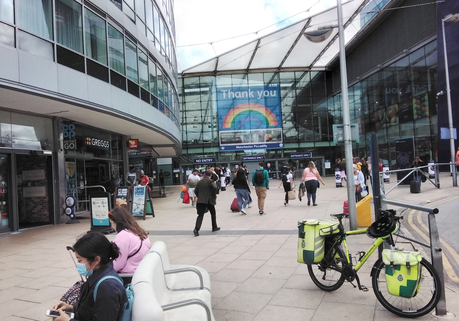 Another long journey today. Left home to catch 0904 from Euston to Liverpool Lime Street. Had a short walk into the city and thanks to the Government scheme to help the hospitality sector I walked into Cafe Nero and was charged around £2.50 for a coffee and buttered scone with jam. Walked back to station to catch 1254 ro Manchester Victoria but due to a train fault we did not leave until 1325. Upon arrival I was able to catch a train through to Piccadilly Gardens and then walked through to Manchester Piccadilly Station. I had reserved a seat on 1535 but managed to catch 1455. I boarded one of the coaches marked for unreserved seats. The train manager was in there and said it was for staff only. I explained my situation and showed my free pass and without saying a word I was told to sit in first class. So back to London in luxury.