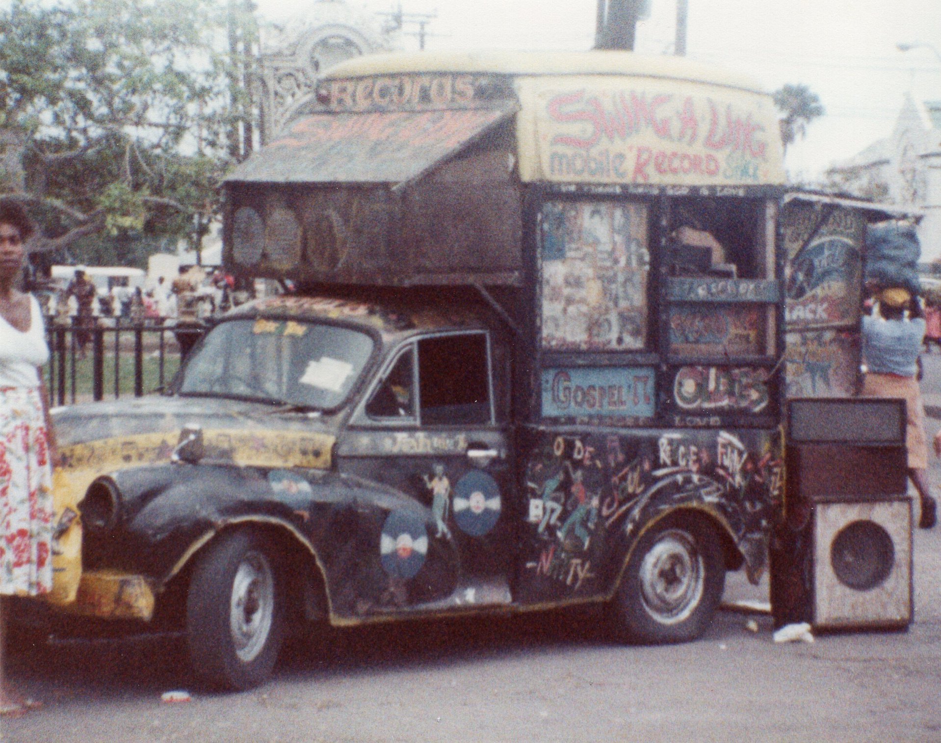 And modelling challenge of the day. Morris Minor converted into a mobile record store. Kingston, Jamaica, 1984 (photo from my cousin.)