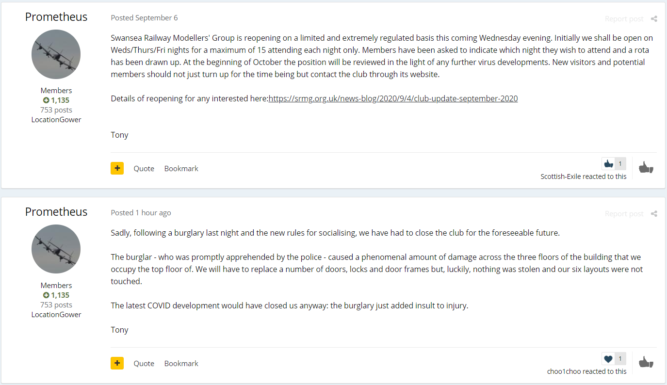 What I have (probably) learnt over the past months is that I am really missing the social side of the hobby. I miss club nights and the long term friendships there – some 20 years or so old. Surprisingly, I realise that I also greatly miss exhibitions and exhibiting with the club. Yes, it’s often a pain, and hard work, but there’s a real sense of achievement when we pull off another show, or spend a few days somewhere like Stuttgart playing trains.